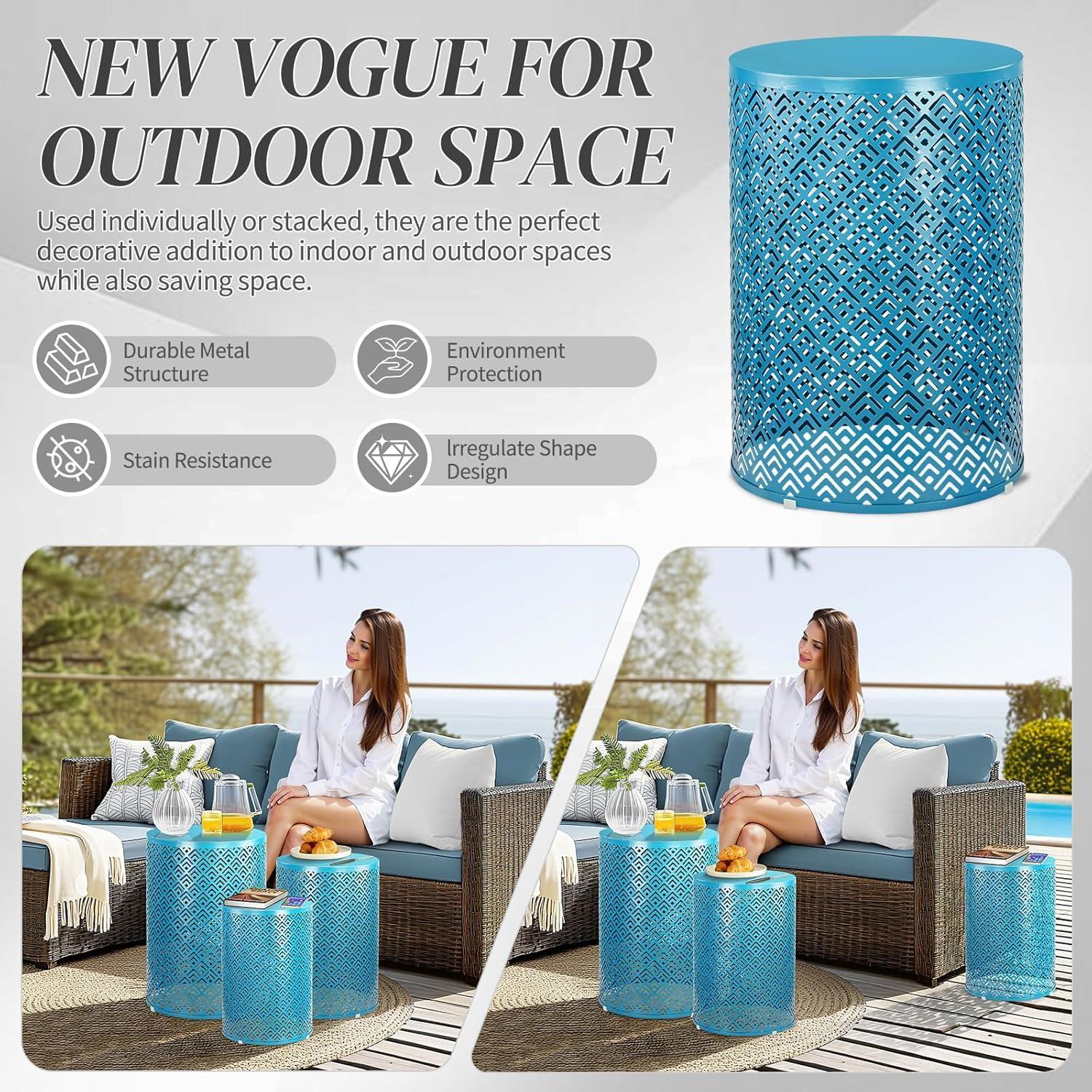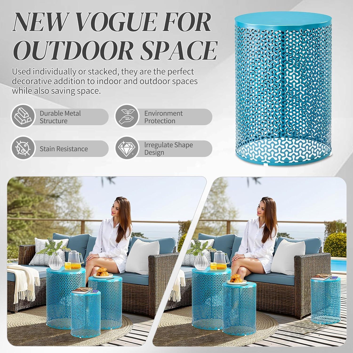Stackable & Standalone – Outdoor nesting tables can be stacked together or separated into 3 separate pieces to save space when not in use