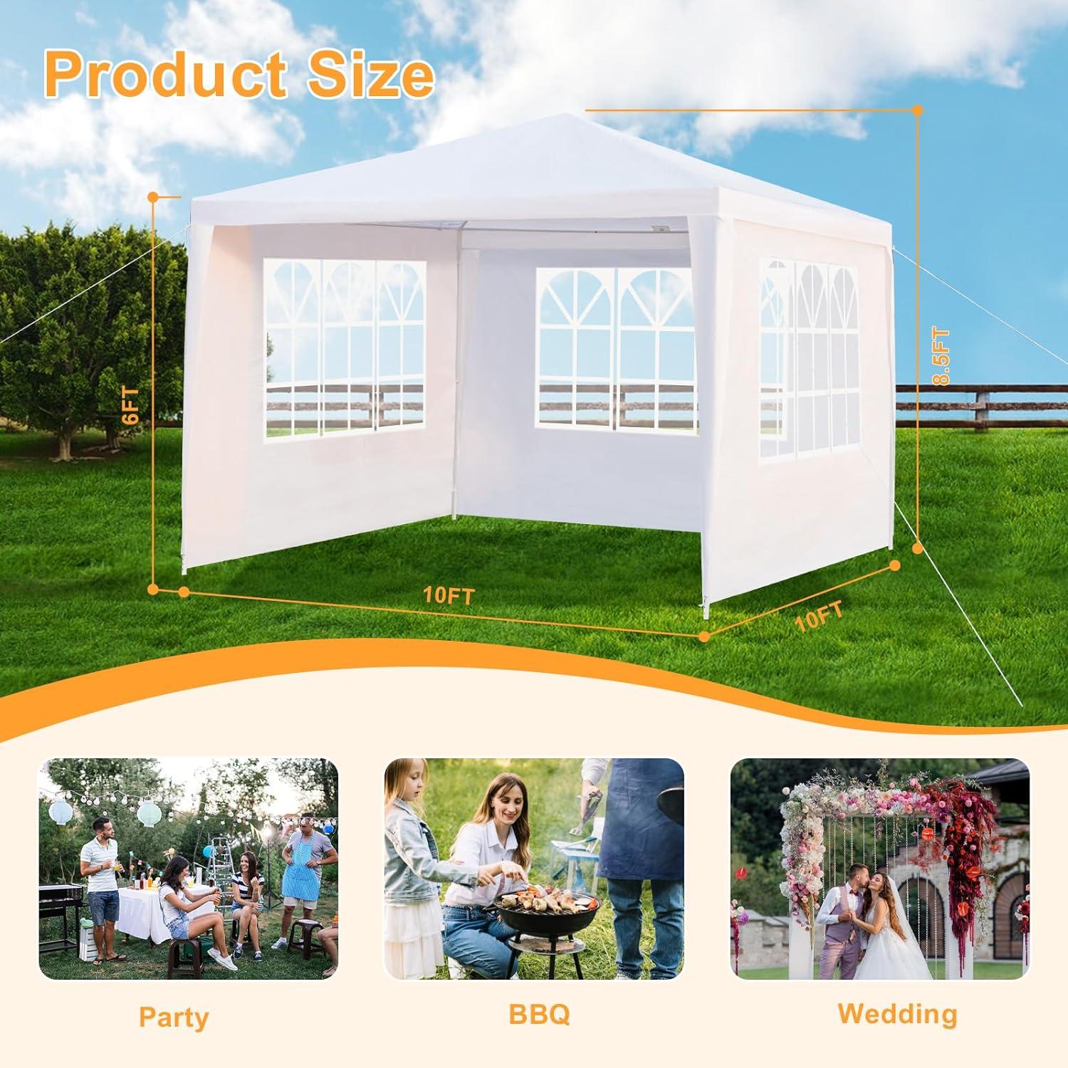 Outvita Outdoor Party Tent, Patio Canopy Tent Gazebo with Removable Sidewalls Instant Event Tent for Cater Events Wedding Birthday Pavilion Beach BBQ (6.5'x6.5')(10'x10'-white-3 walls)