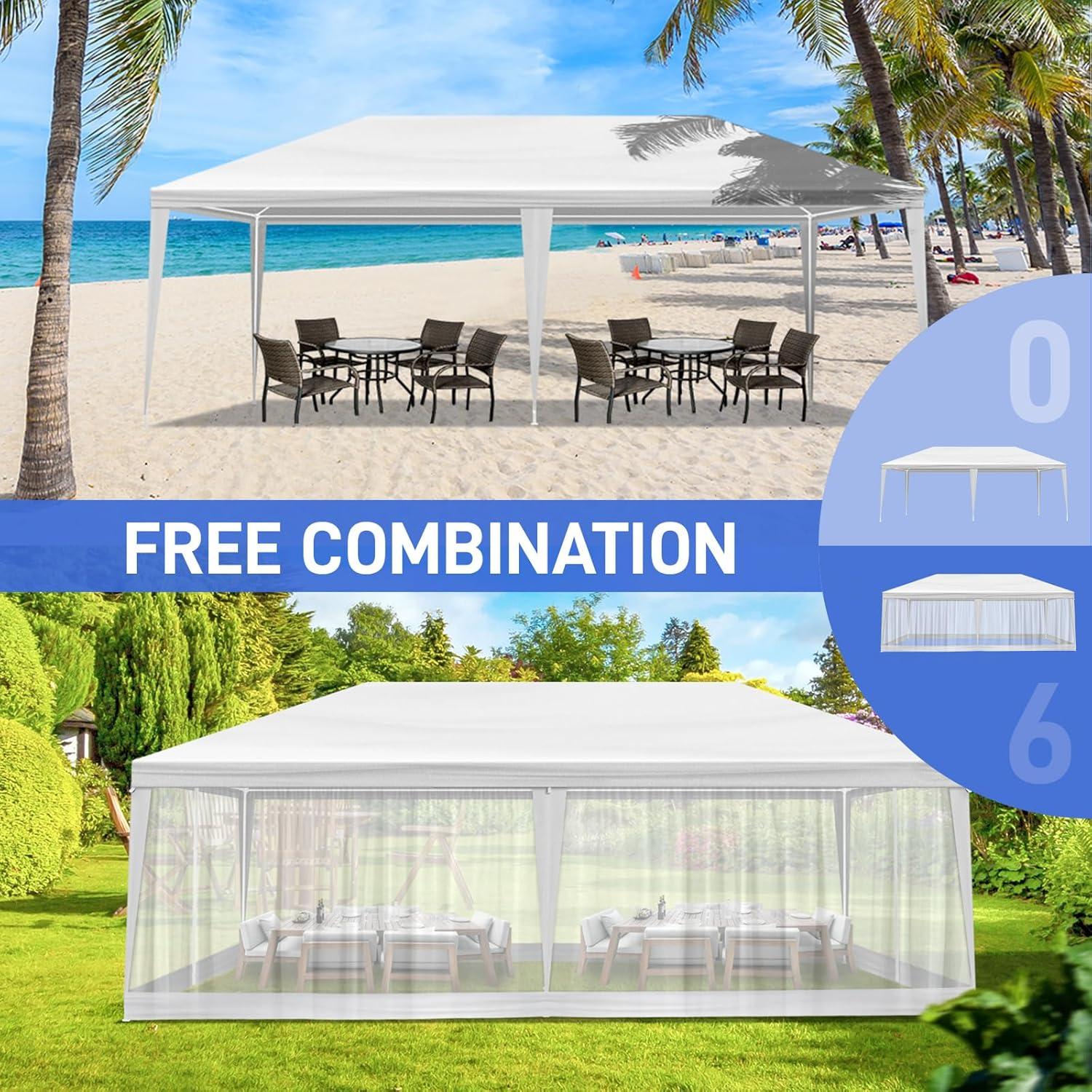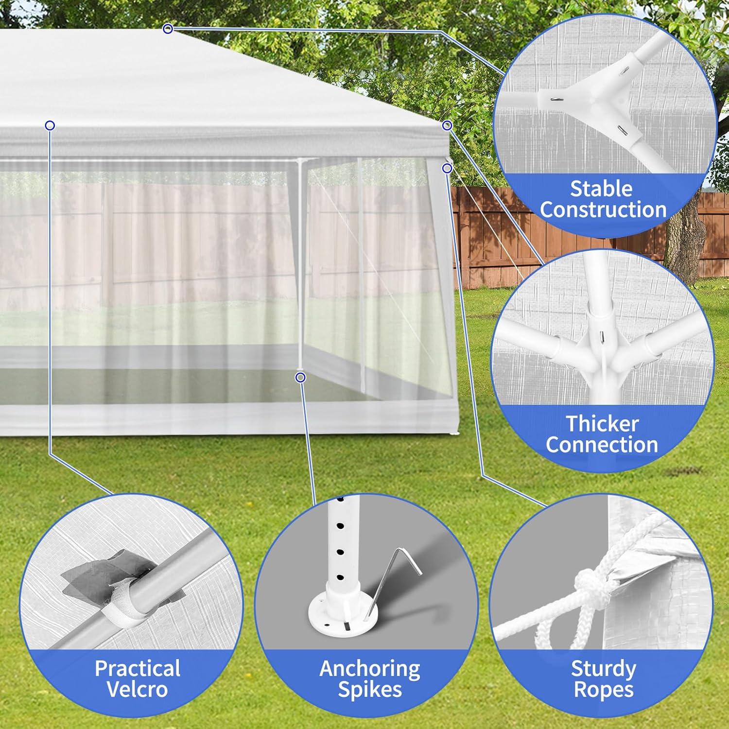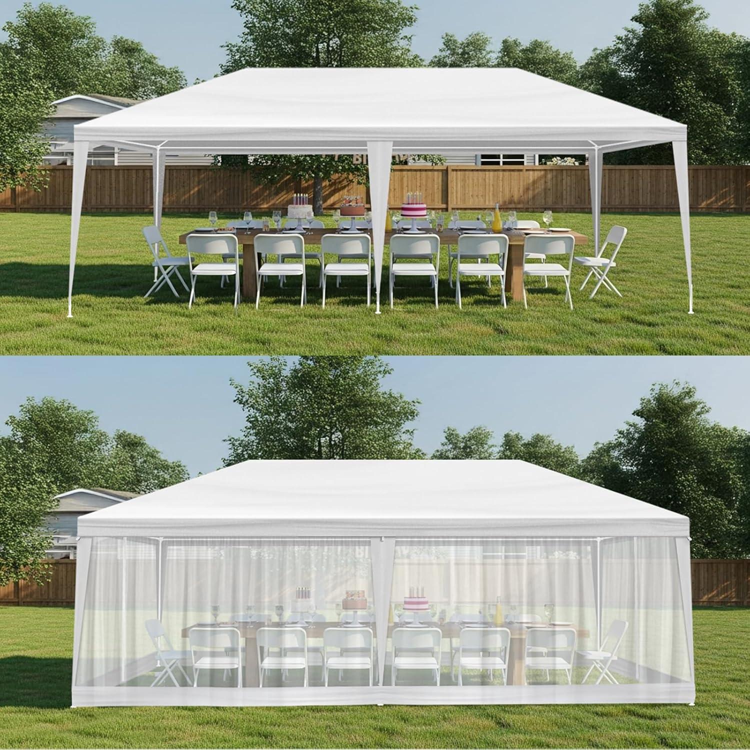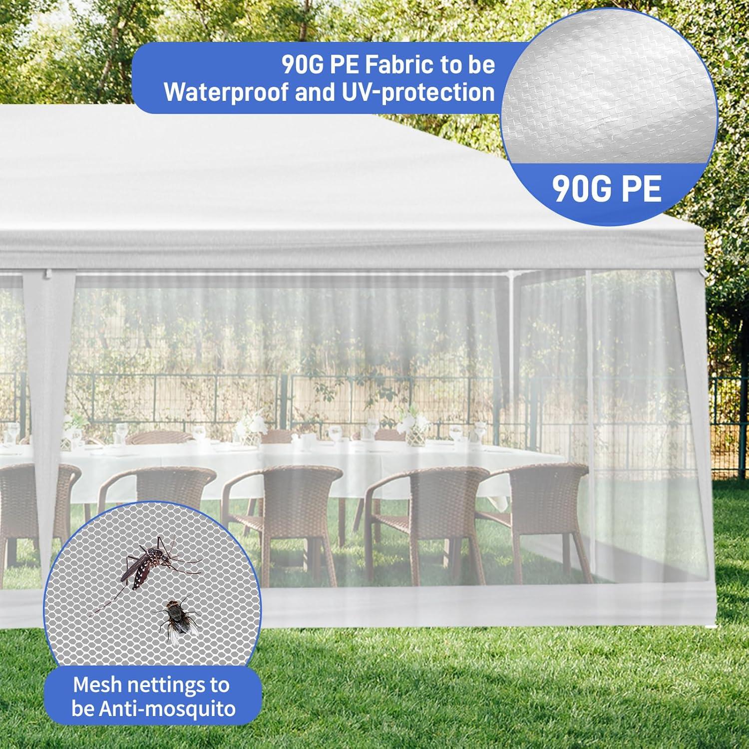 Easy Setup & Disassembly: Designed for convenience, the outdoor party tent includes a simple one-piece top and mesh sidewalls, making installation and disassembly quick and hassle-free for all users
