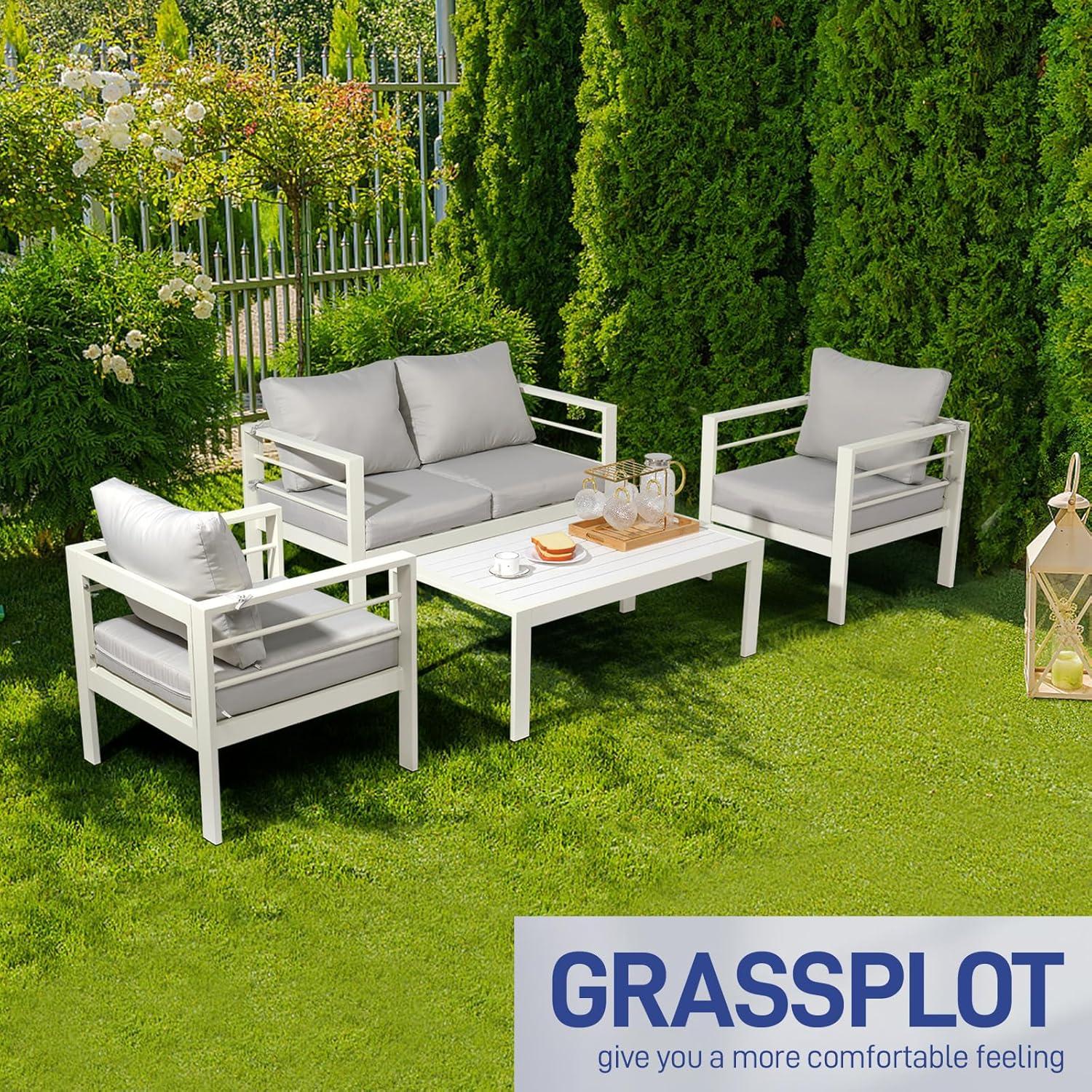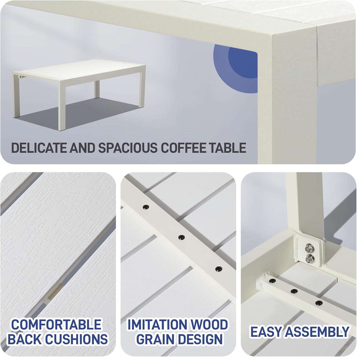 UPGRADED ALL-ALUMINUM FRAME: Rust-resistant and durable, our modern patio furniture set is crafted with upgraded all-aluminum frame, ensuring long-lasting quality and protection against rust, fading, and corrosion in any weather. It combines the advantages of strength and lightness. Easy to move and simple and elegant, which is in line with the modern light luxury furniture style.