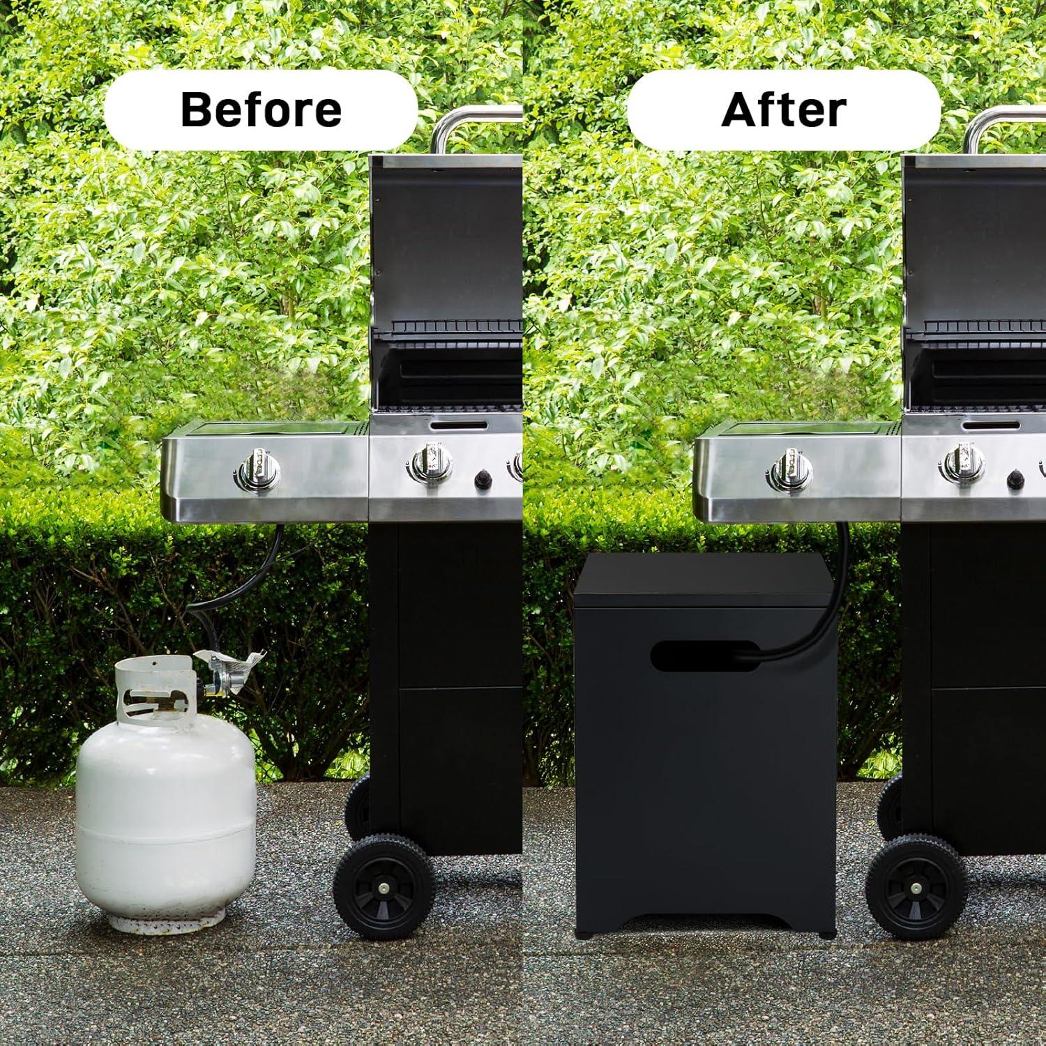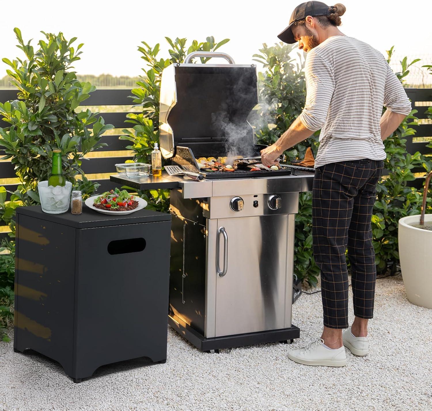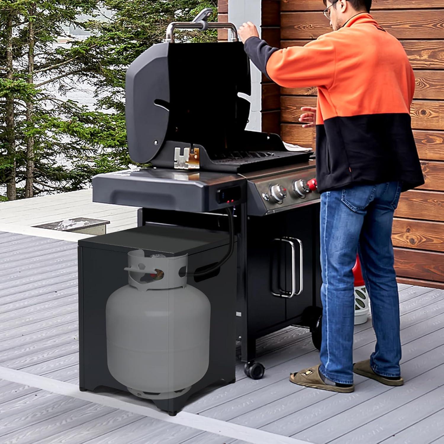 【Durable Build for Long – Lasting Use】 Crafted with tough materials, it works like a reliable propane tank storage box! Resists rust, cracks, and wear from sun, rain, or daily use. Sturdy enough to safeguard your tank season after season, ensuring your outdoor setup stays strong