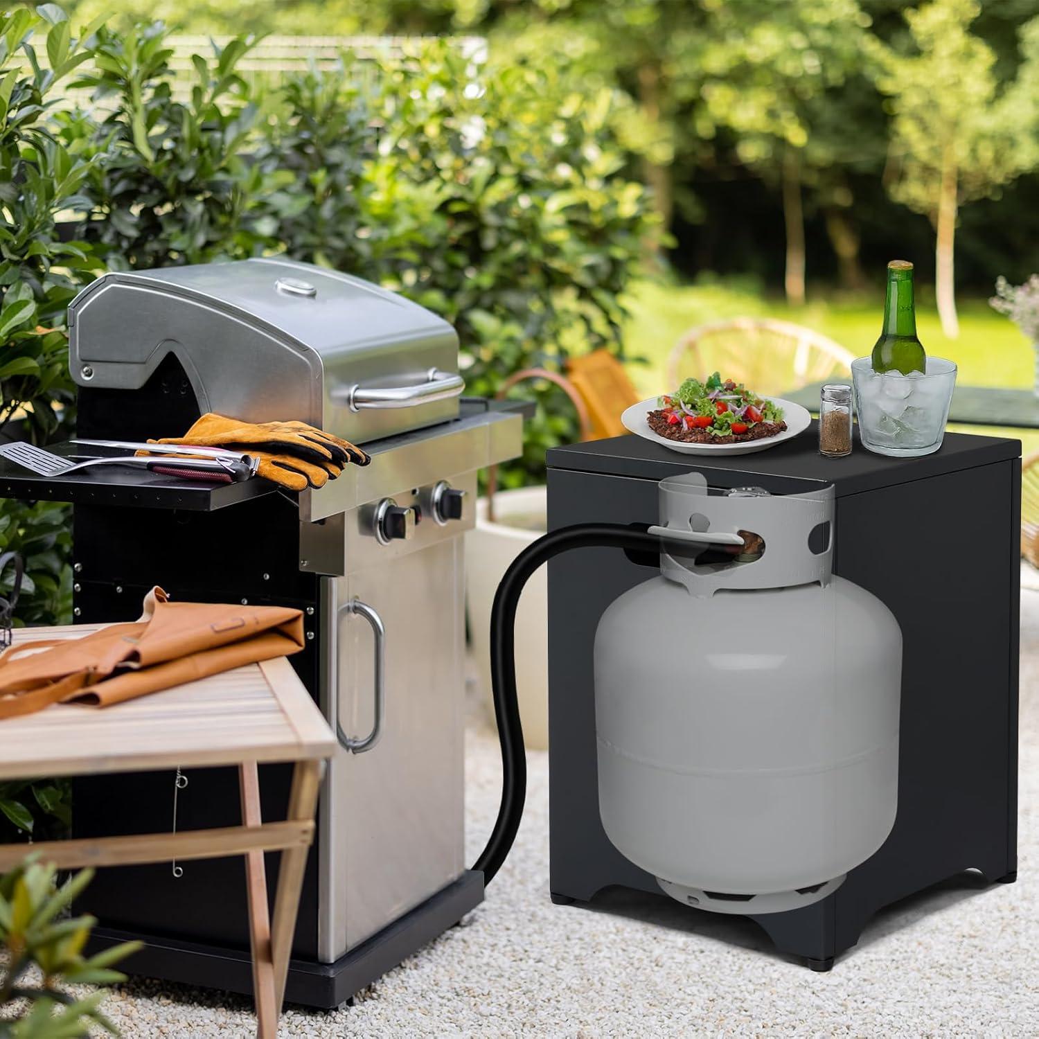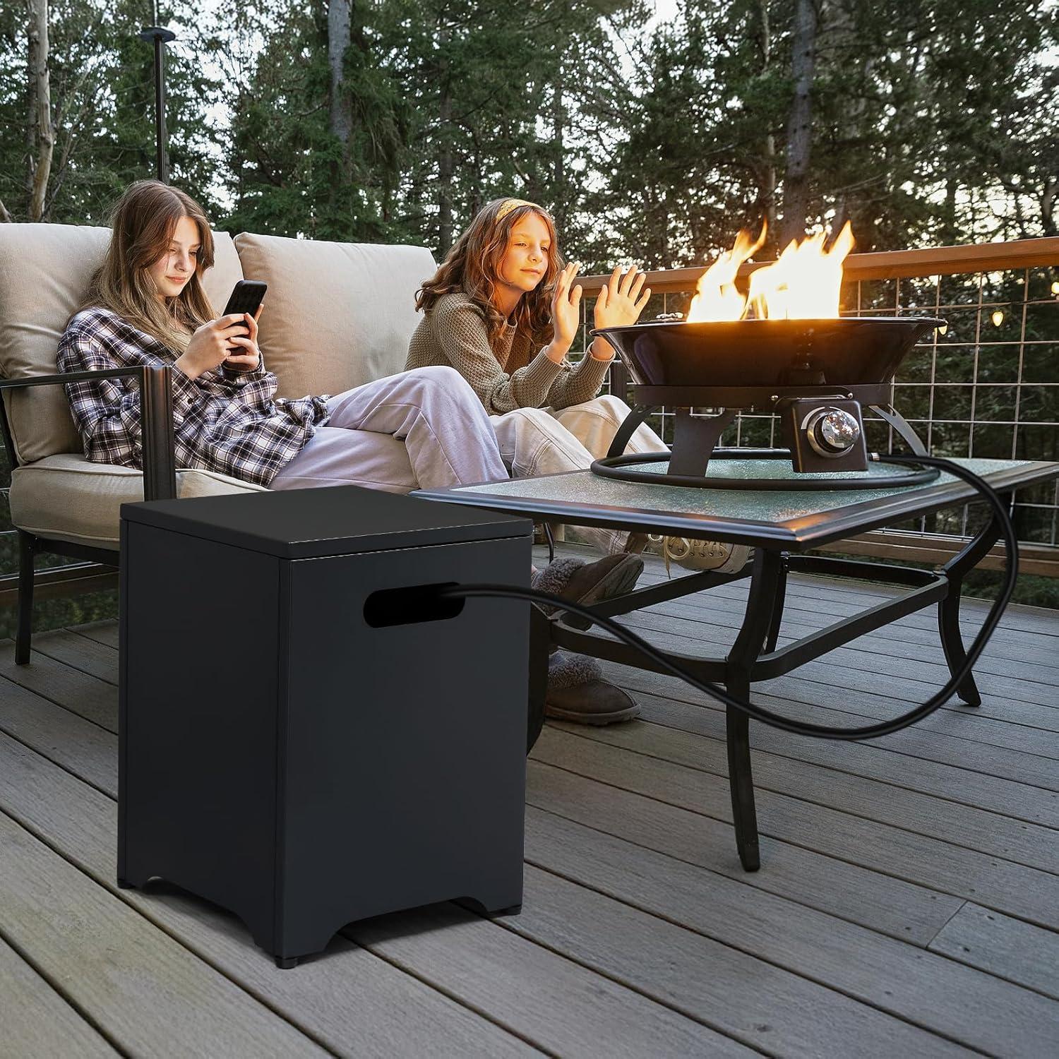 Outvita Outdoor Propane Tank Cover Table, 16in Propane Tank Storage Box with Carry Handle, Powder-Coated Steel, Multi - Use as Side Table for Patio, Garden & Living Room, 16 * 16 * 19.8inch, Black(black)