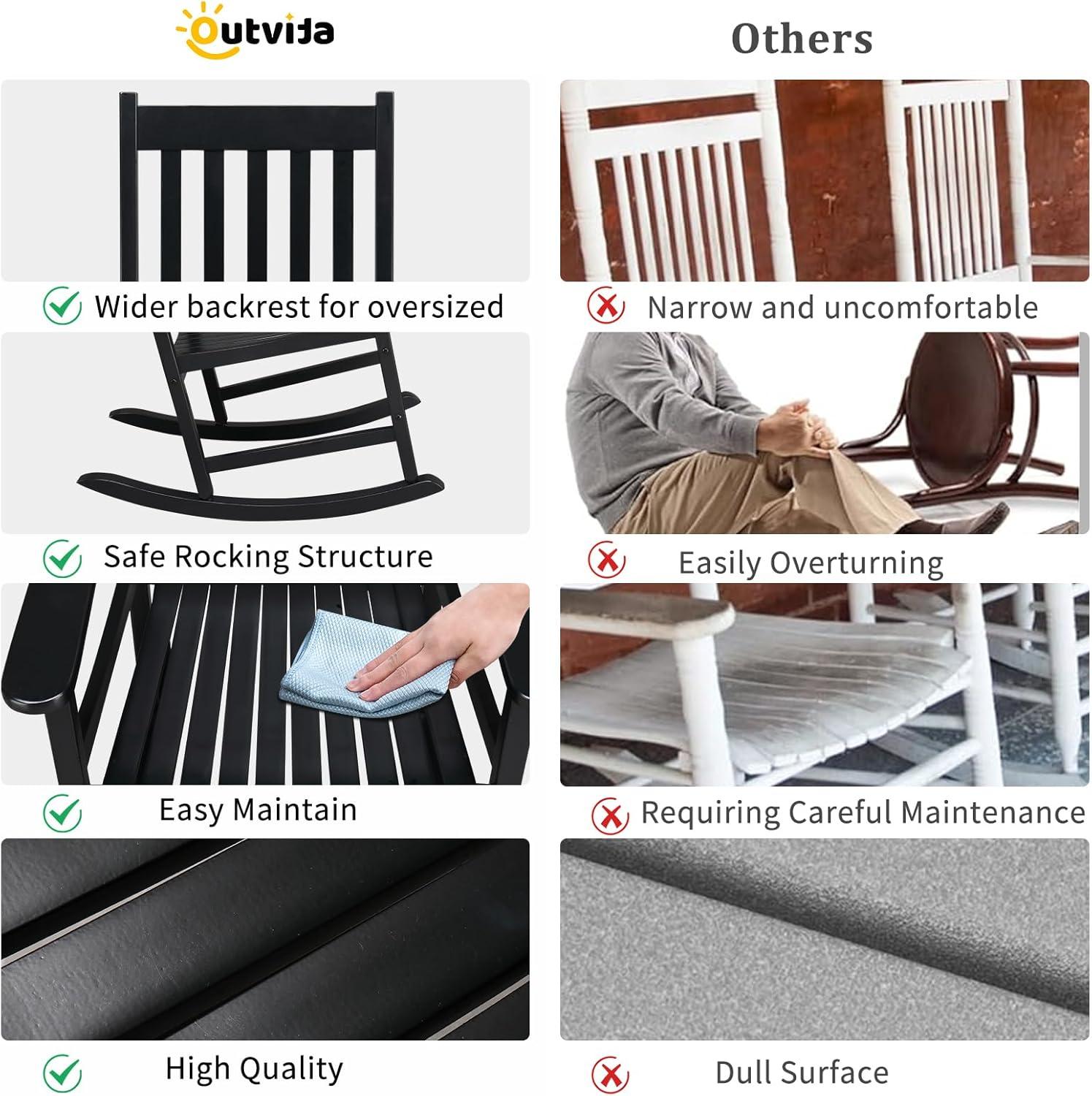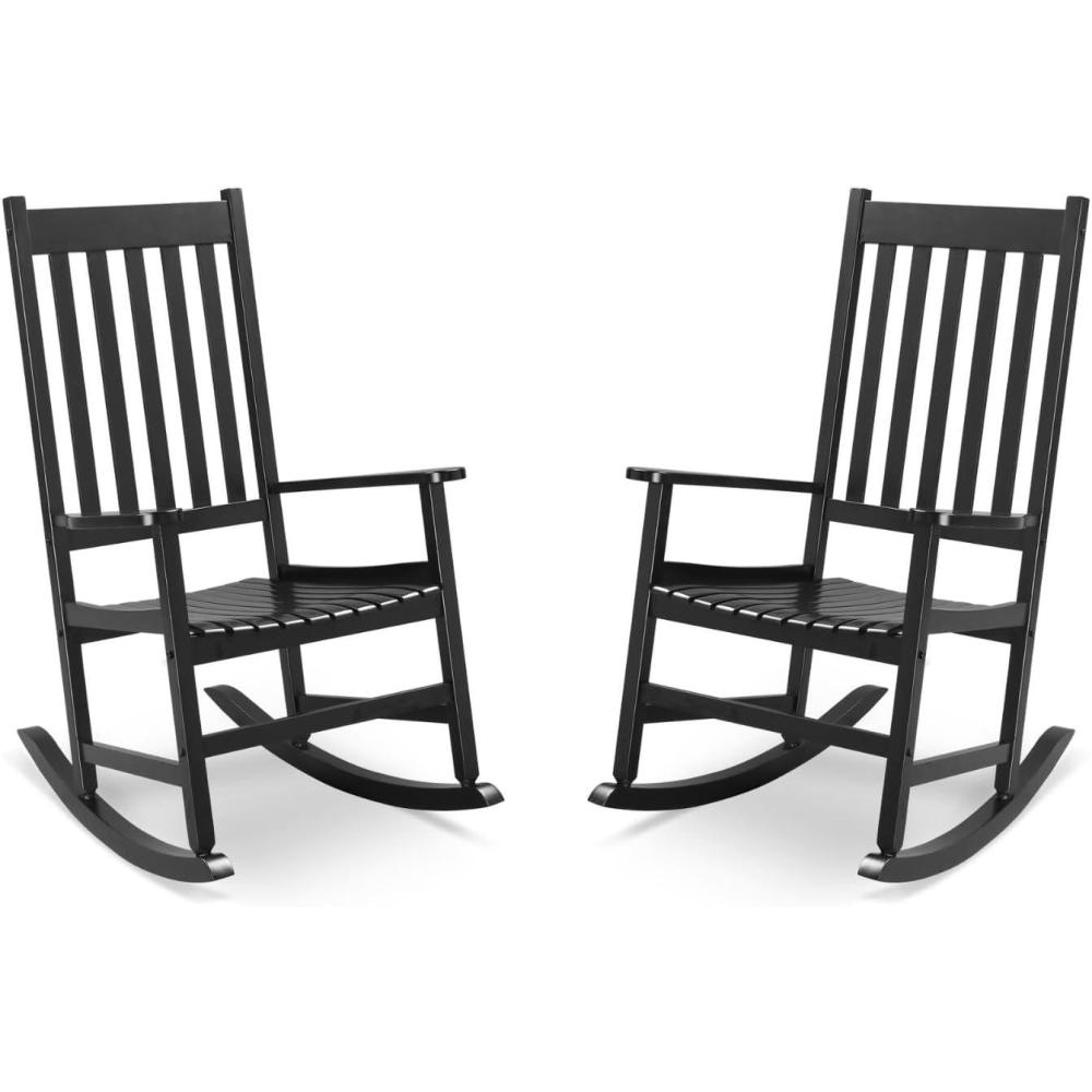 【Selected Solid Wood】This outdoor rocker is made of 100% solid wood and handled with Polyurethane paint to provide an extra layer of ultra-effective protection against corrosion. Stable frame is strong enough to hold up to 385 pounds, provding a solid seating area year after year. Our rocking chair is made from FSC-Certified wood. Our rocking chair is made from FSC-Certified wood