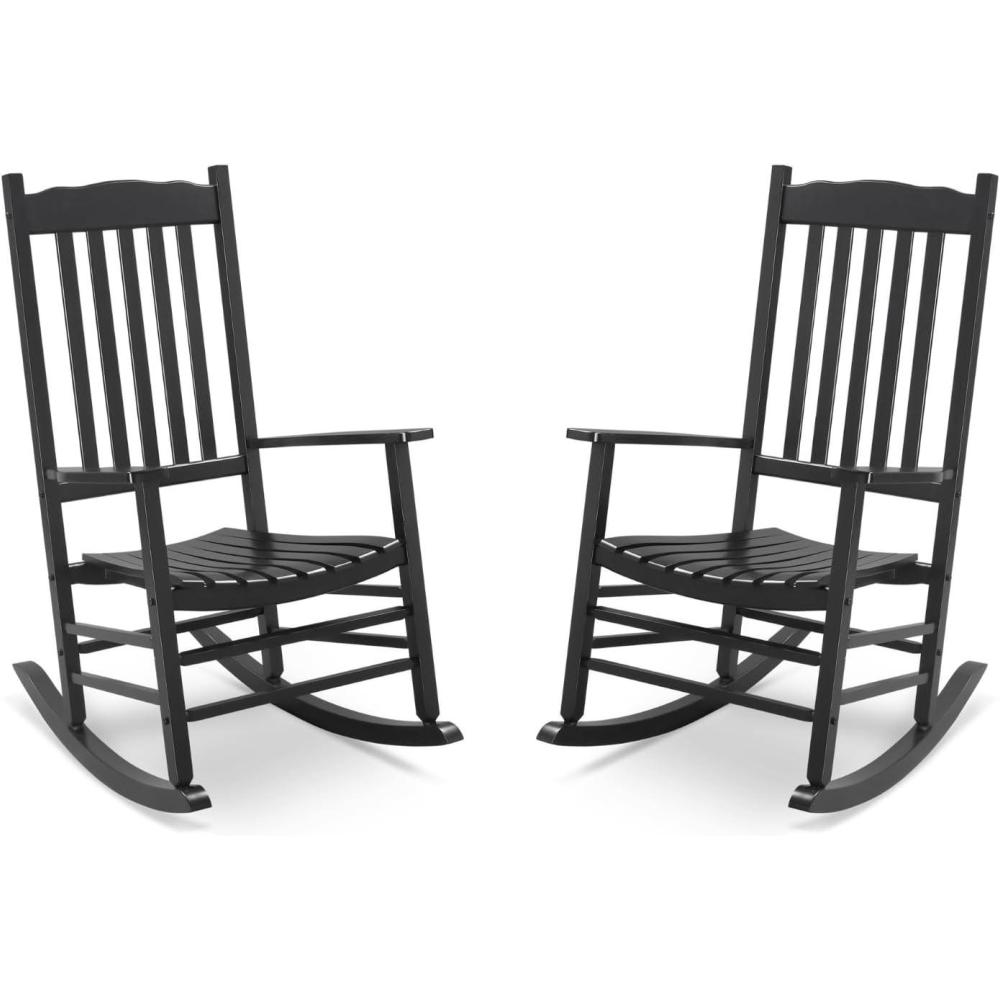 Outvita Outdoor Rocking Chair Set of 2, Solid Wood High Back Rocker, All Weather Lounge Chair for Porch Patio Fire Pit Garden Backyard Deck Indoor, Wave Shape, Black