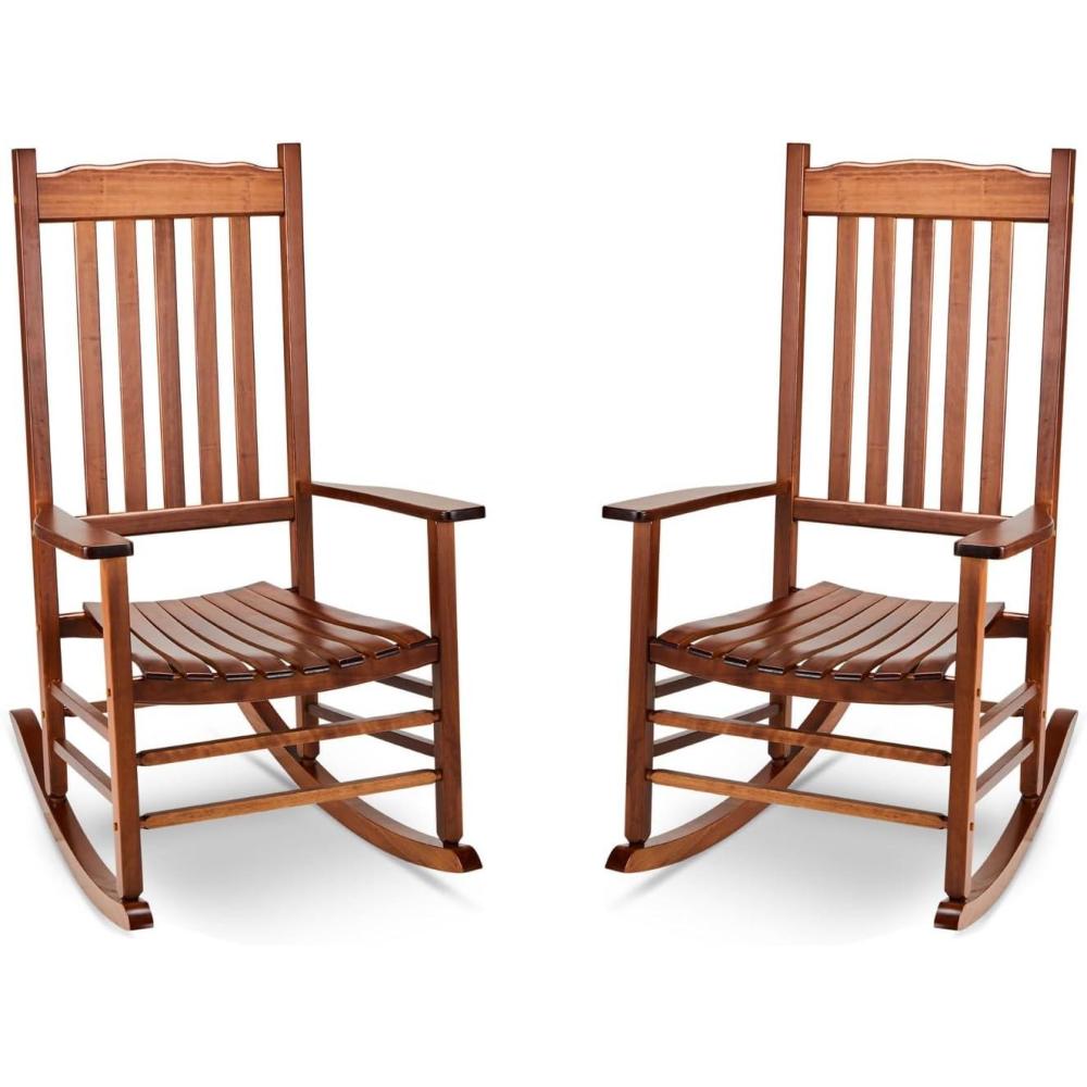 【Selected Solid Wood】This outdoor rocker is made of 100% solid wood and handled with Polyurethane paint to provide an extra layer of ultra-effective protection against corrosion. Stable frame is strong enough to hold up to 385 pounds, provding a solid seating area year after year