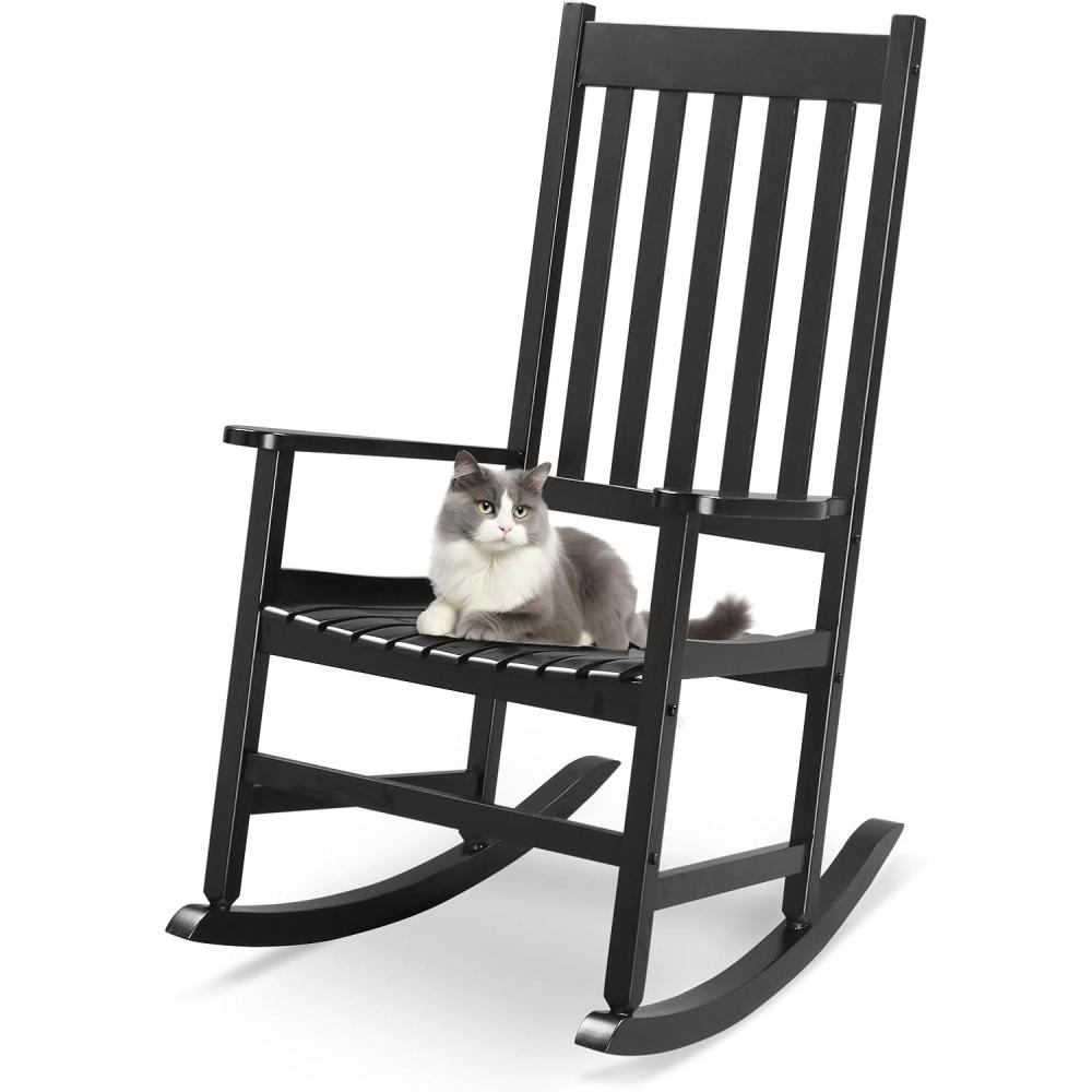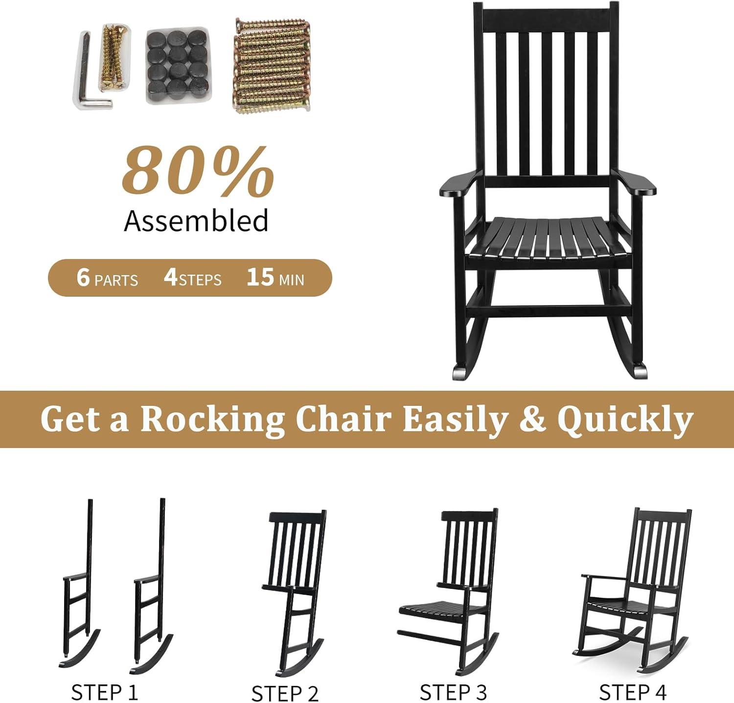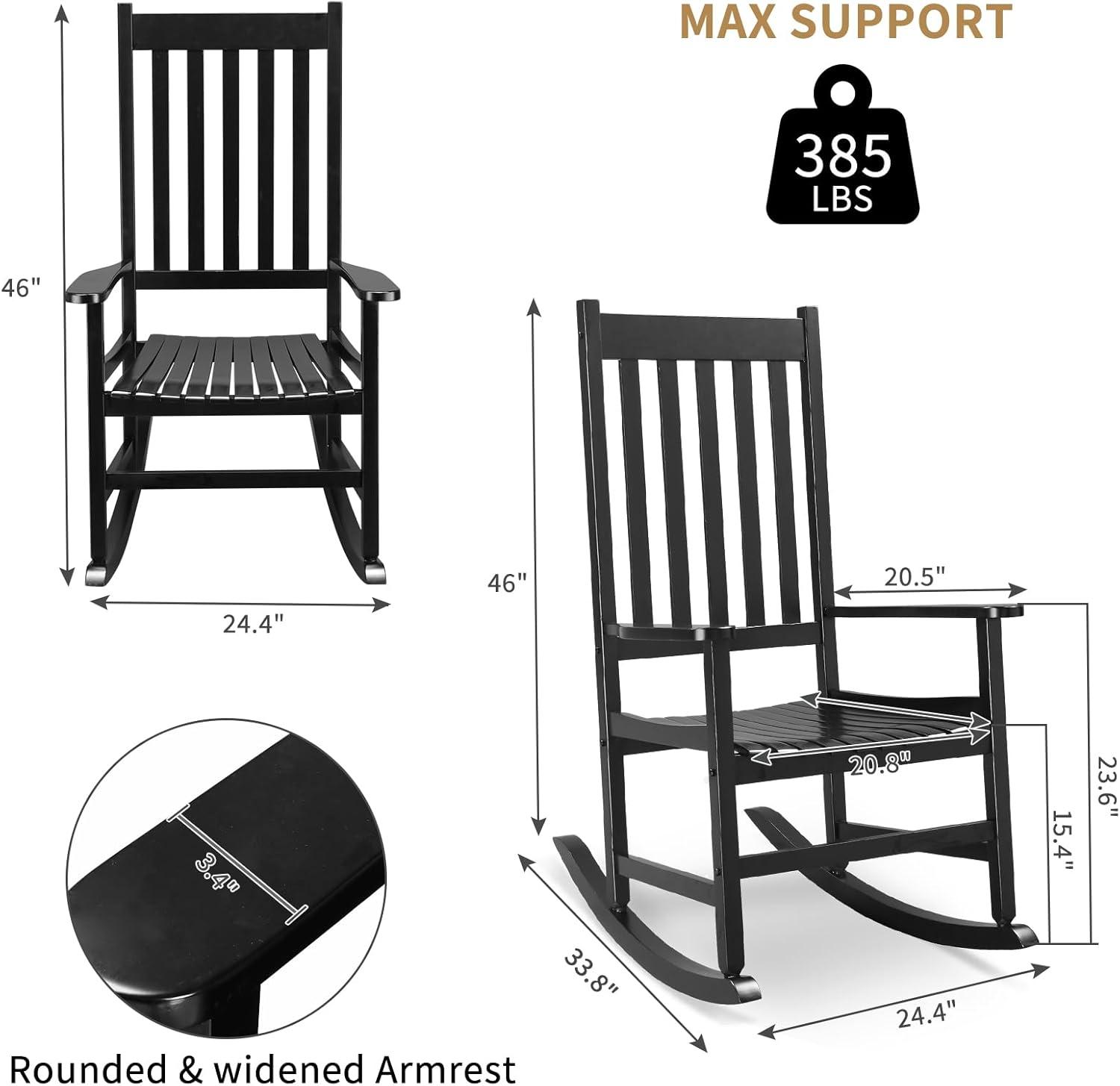 Outvita Outdoor Rocking Chair, Solid Wood High Back Rocker, All Weather Lounge Chair for Porch Patio Fire Pit Garden Backyard Deck Indoor, White(Black)