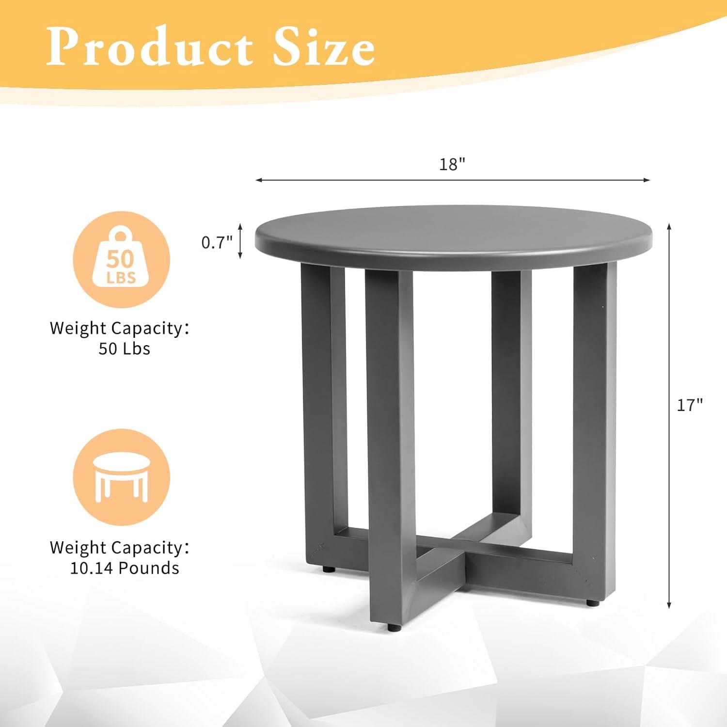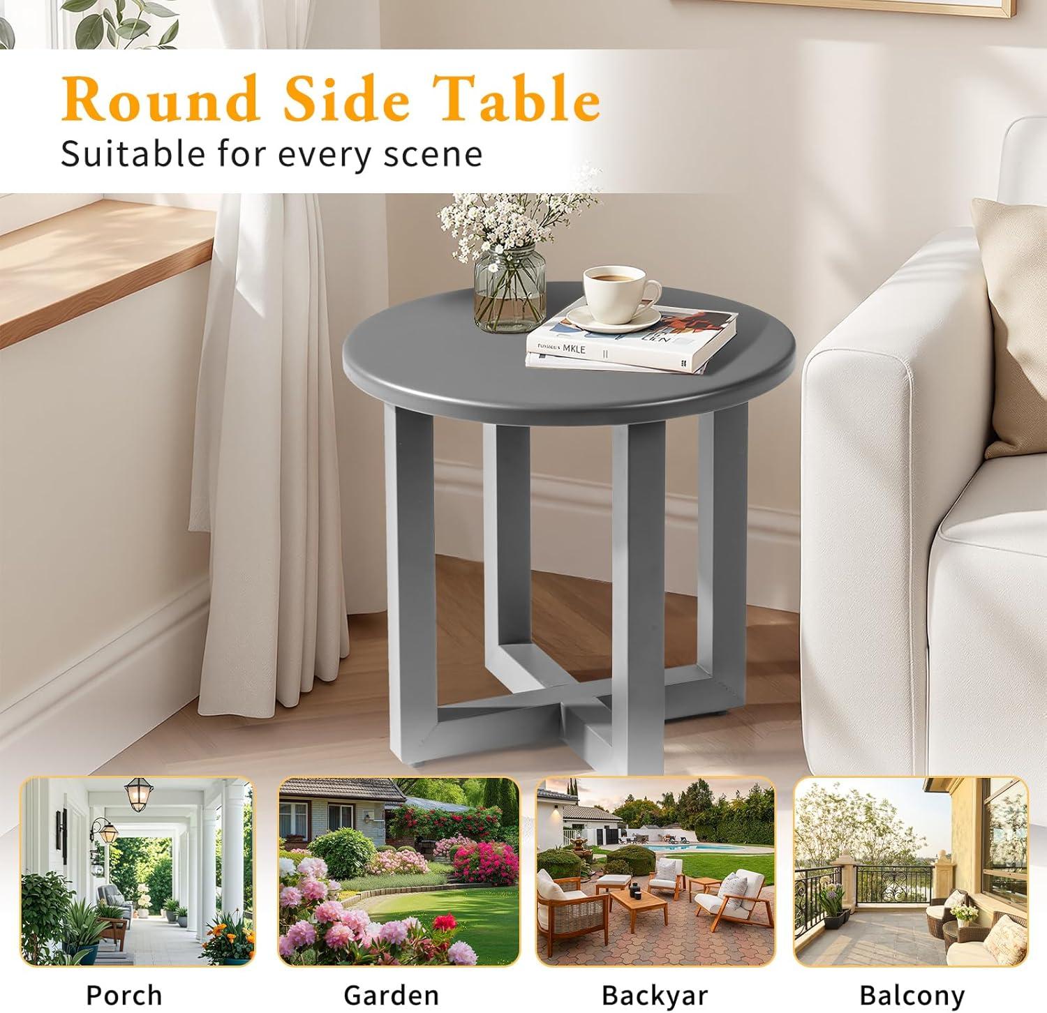 Outvita Outdoor Round Side Table, 18" Weather Resistant Small Metal End Table with X Legs for Patio Balcony Lawn Garden Poolside Living Room(1pc)