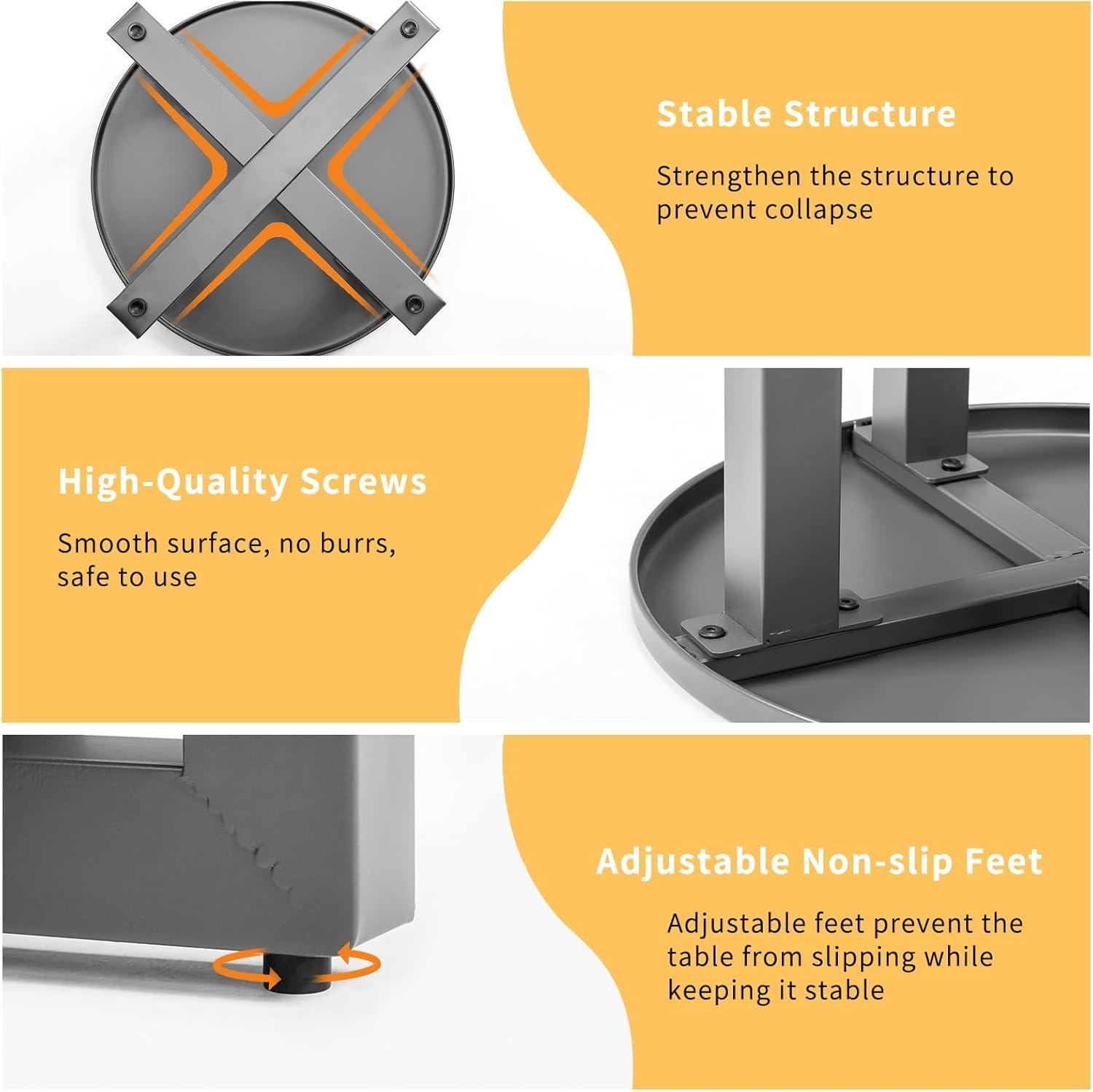【Adjustable Stability】This outdoor metal table comes with adjustable plastic feet, which can remain stable even on uneven ground. The non-slip pad prevents scratching the floor, so you can use it with peace of mind whether you place it in the living room or the garden