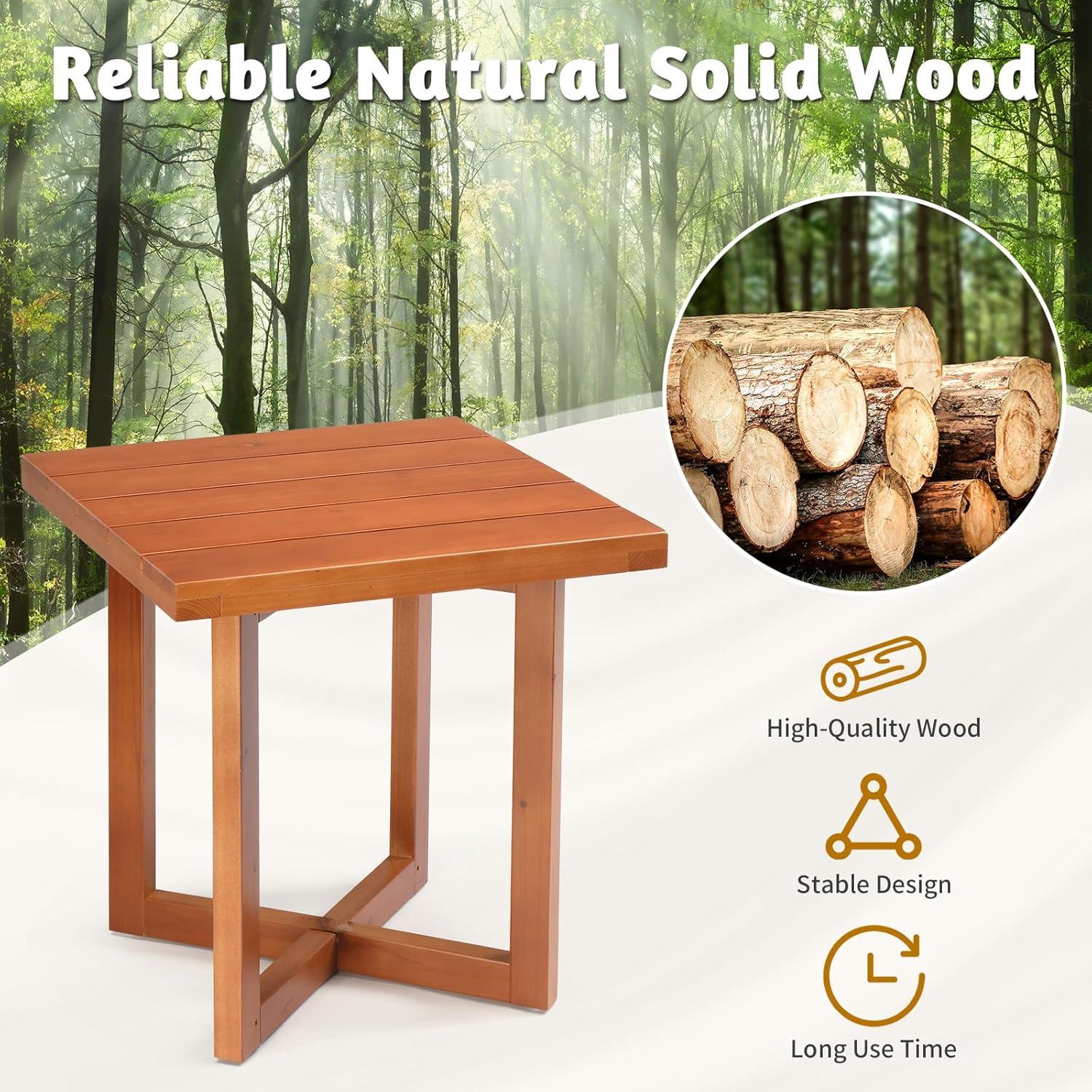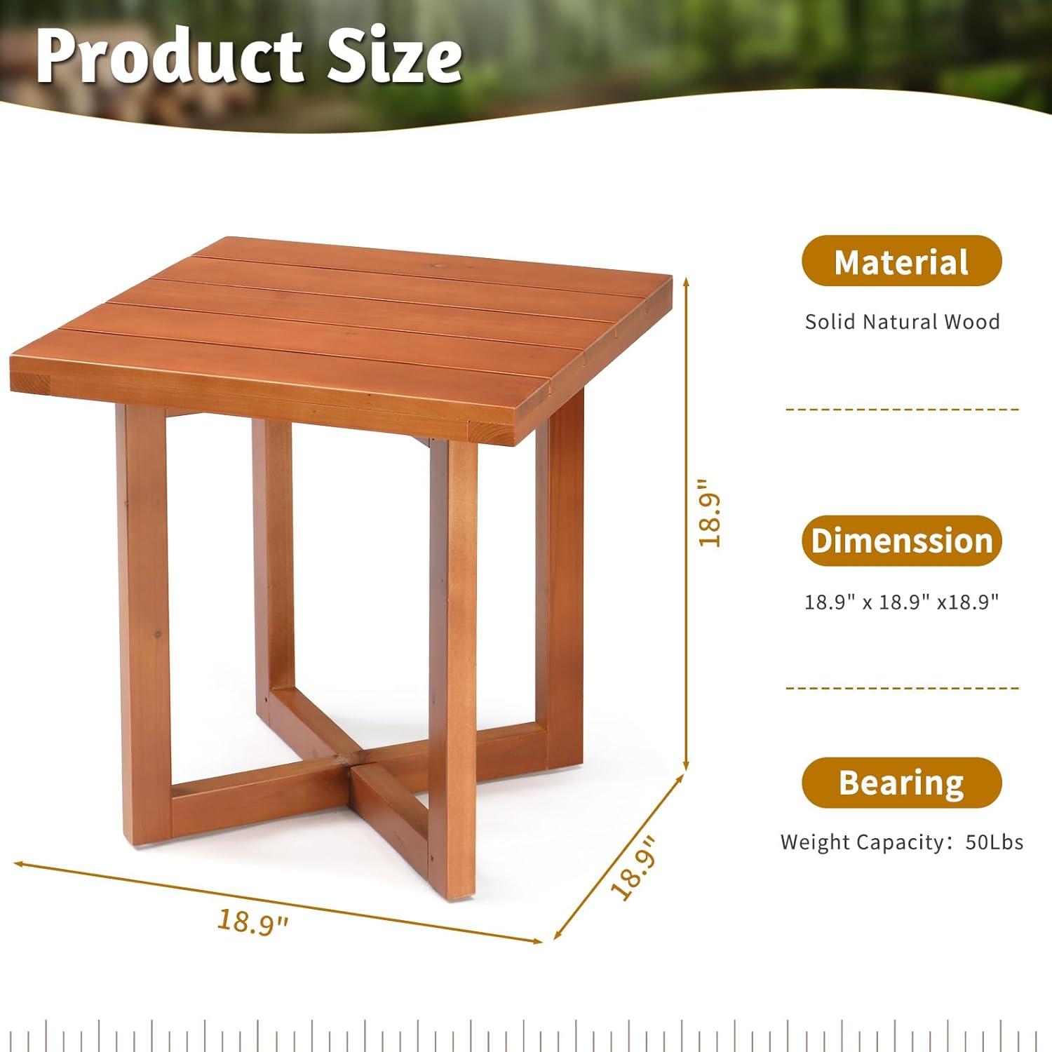 Add timeless charm to your indoor or outdoor space with this natural wood square side table. Crafted from durable poplar wood, this accent table is built for both beauty and function. Lightweight yet sturdy, it's easy to move around for daily use. Whether placed beside an Adirondack chair or used as a nightstand, its classic design and curved legs bring rustic elegance and practical convenience to any setting. A perfect blend of simplicity and style, this table is suited for balconies, gardens, living rooms, and more.