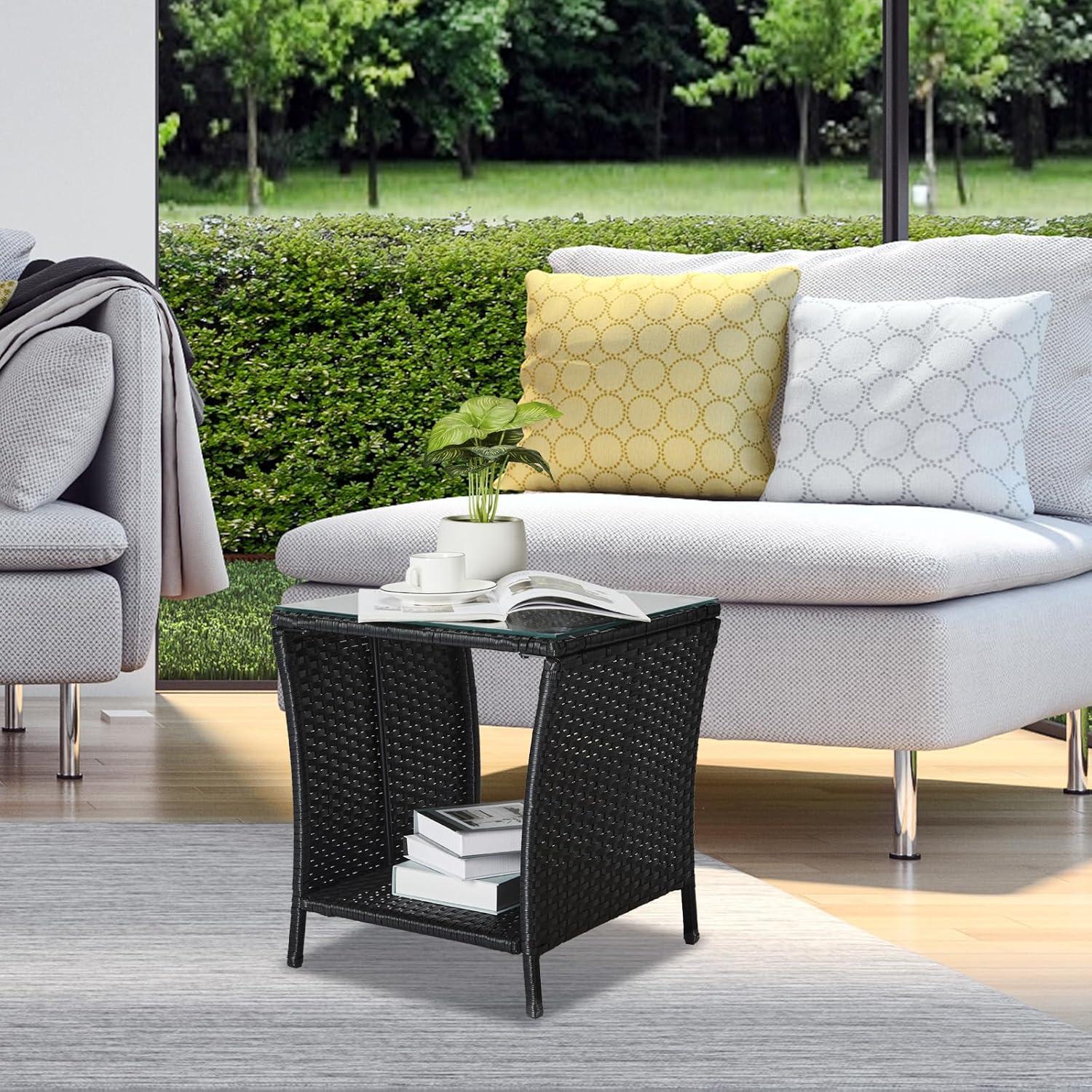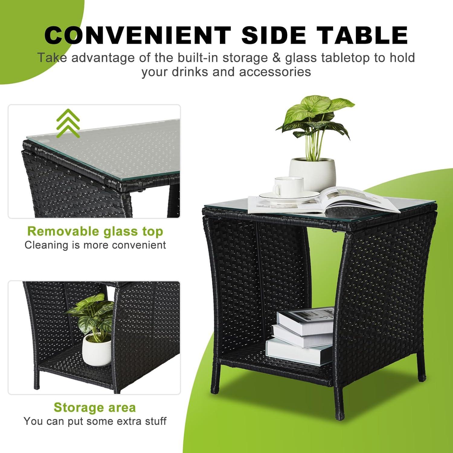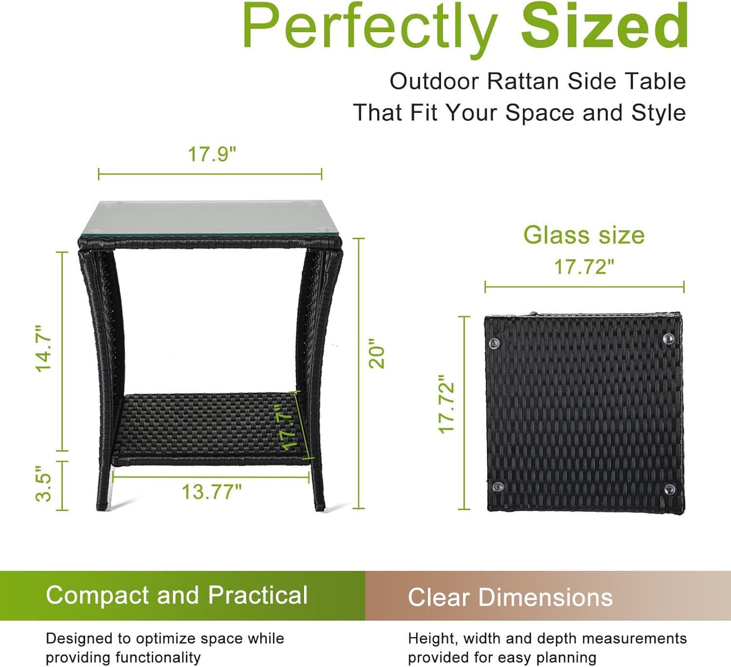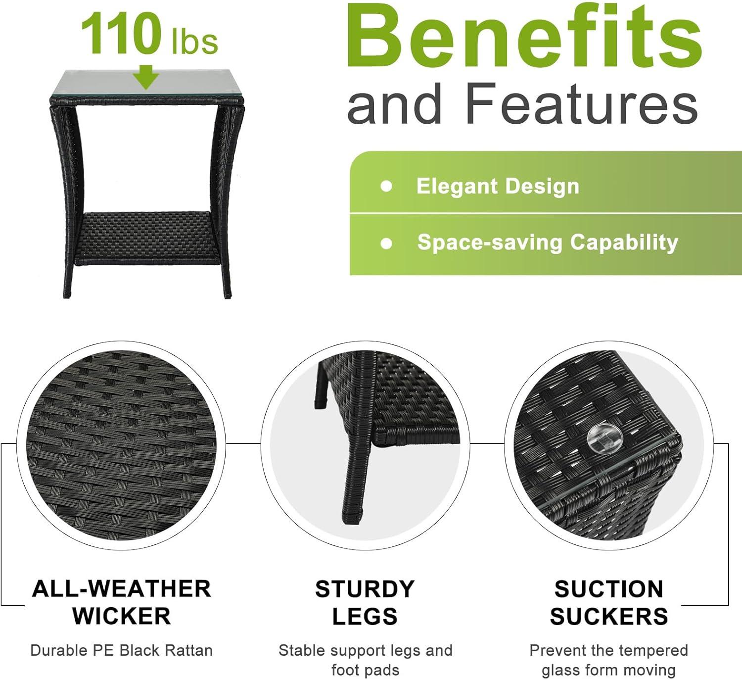 【CONVENIENT】This small patio table is 15lb. You can easily move it to anywhere you like. The rattan material and glass top is convenient to clean. Simply wipe down the weather-resistant wicker to clean; Table's tempered glass protects against scratches