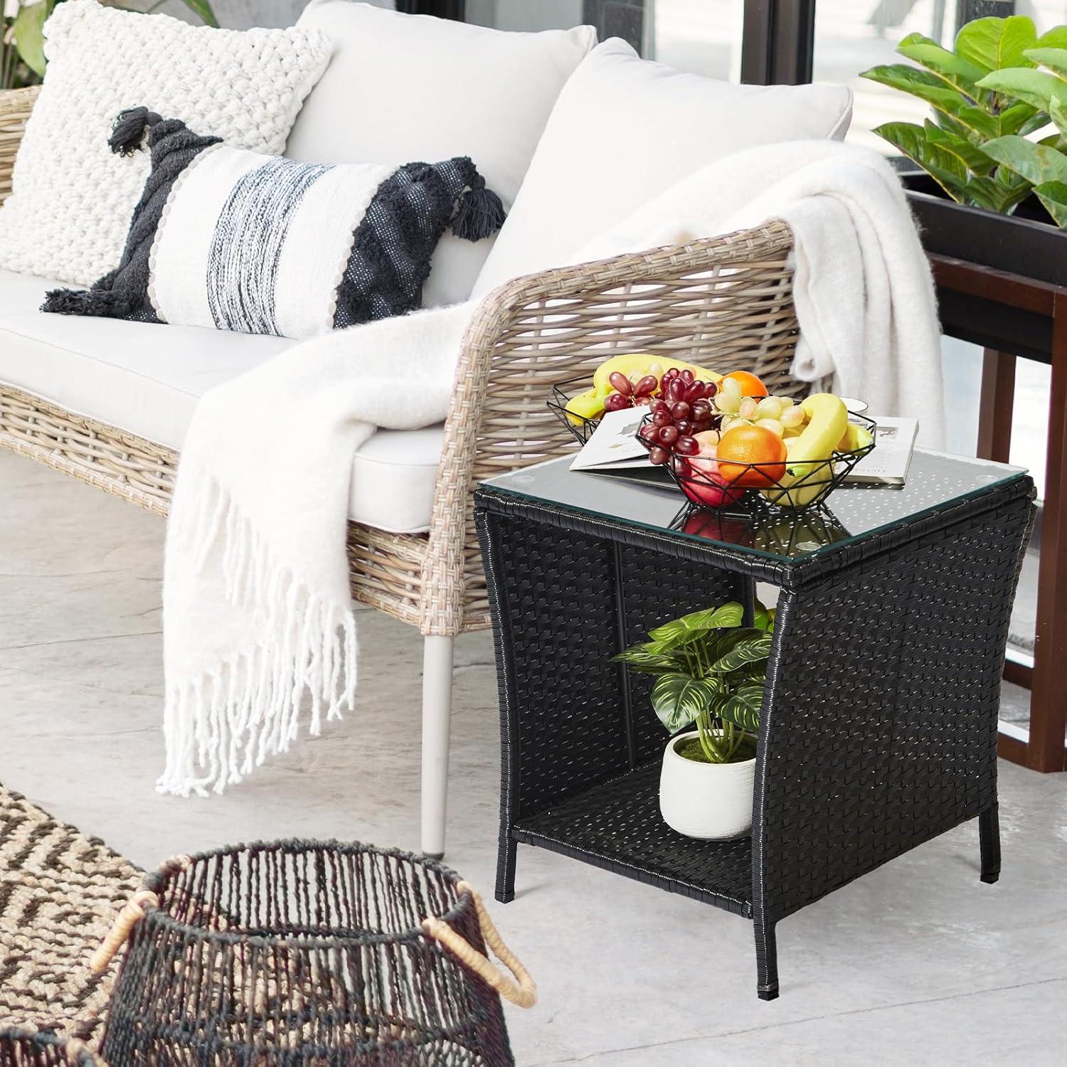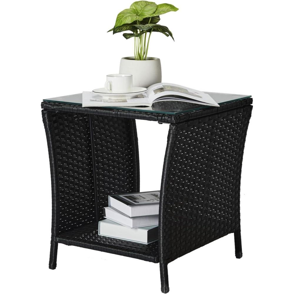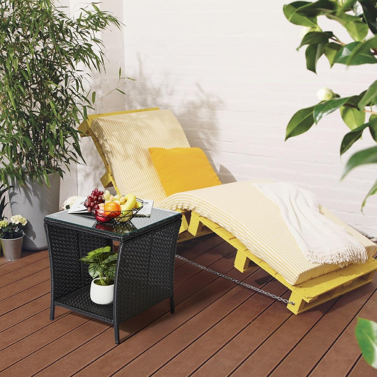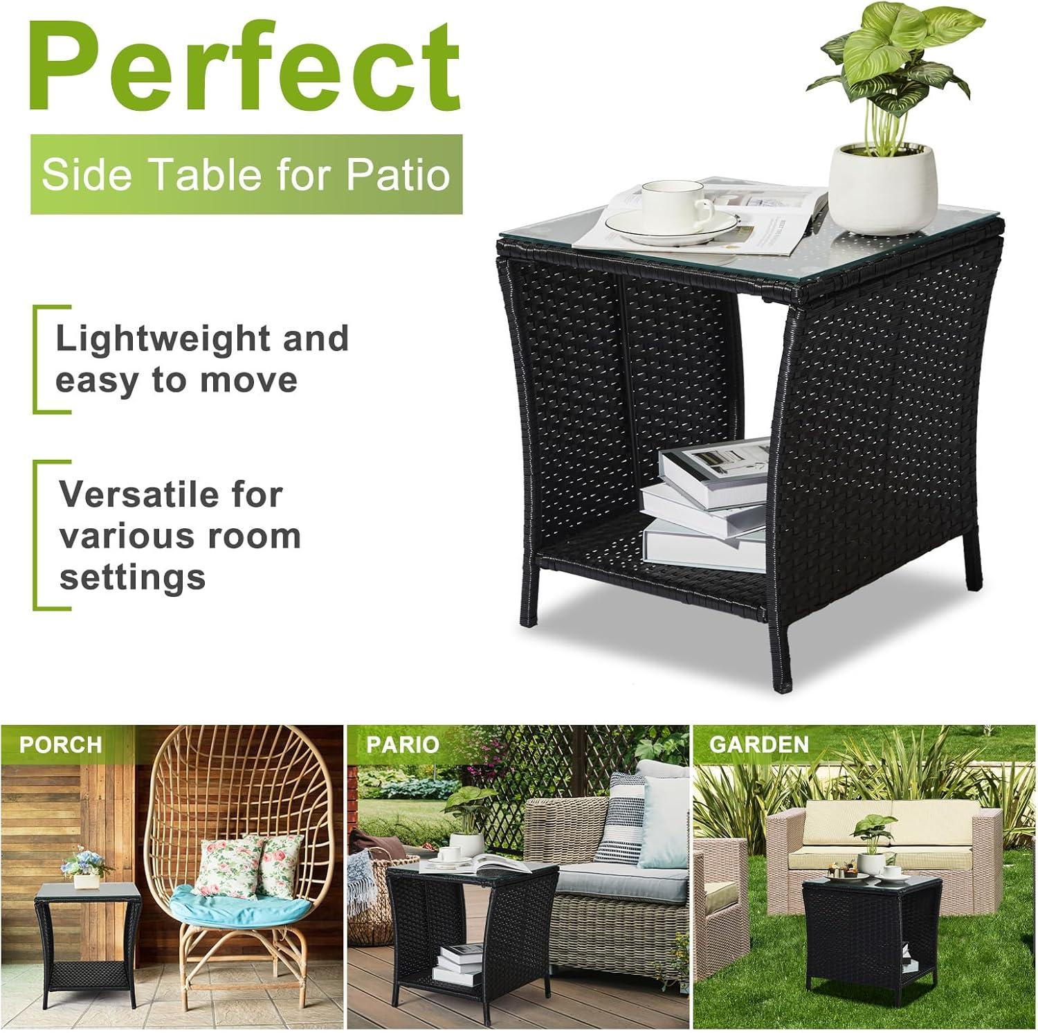 【STURDY & DURABLE】PE rattan has a smooth surface without thorns which can protect your skin hurting. And it's good flexibility, waterproof and sun-resistant so that the rattan side table is not easy to break at outside and withstand all weather variations. With strong steel frame, it can last for long time