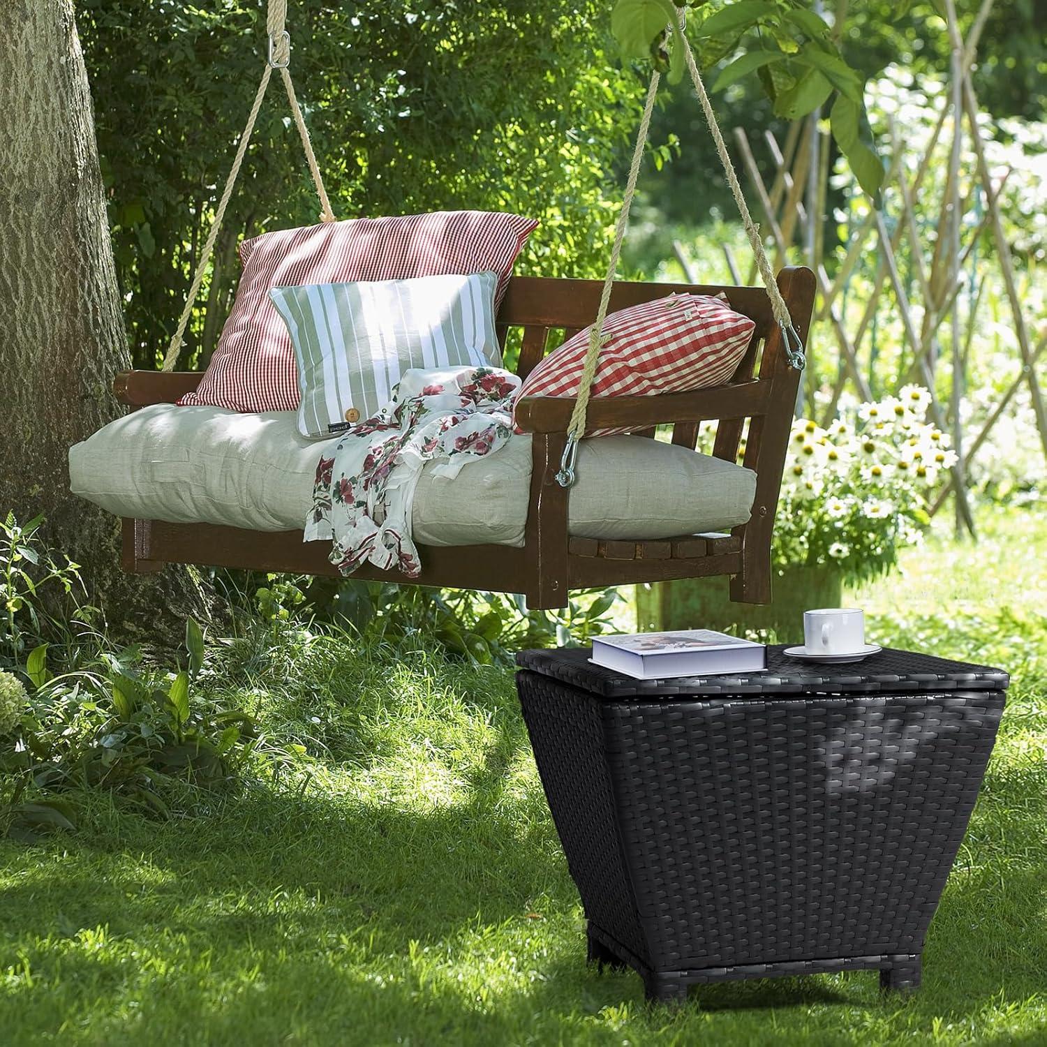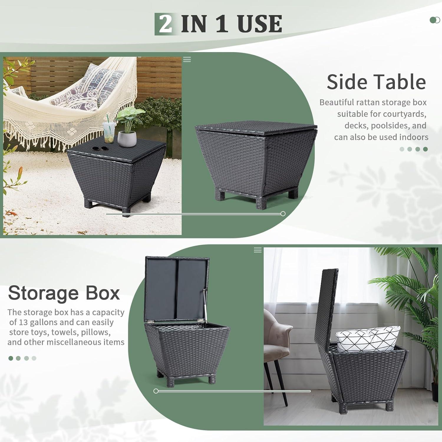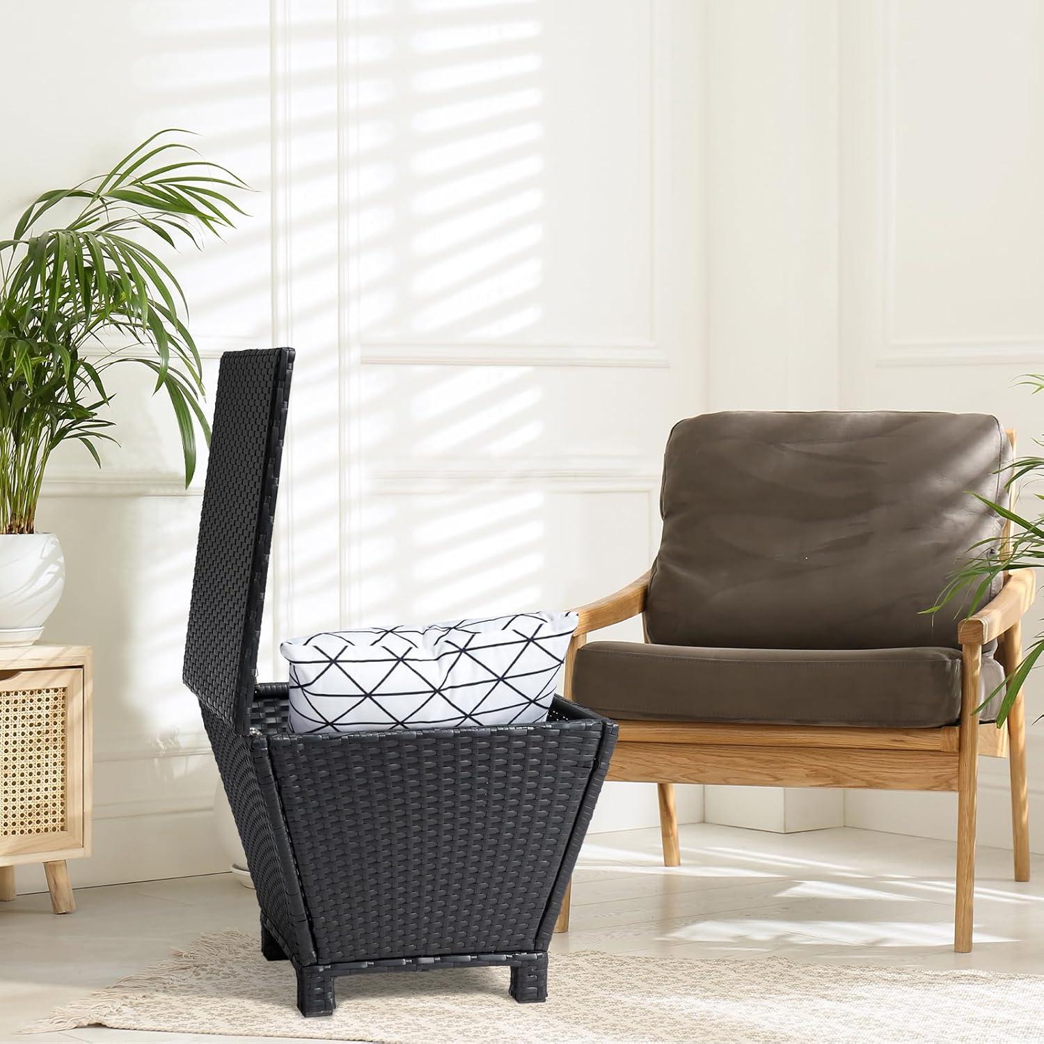 imageOutvita Outdoor Side Table Rattan Coffee Table with Storage 27 Gallon Patio Small Deck Storage Box for Cushion Towel Books Brown Side Table with lidBlack