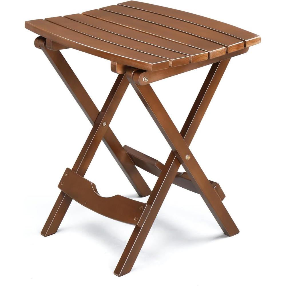 Durable Solid Wood Construction: Made from high-quality fir wood, this folding table is designed to endure the elements, showcasing its natural beauty rain or shine. Its robust frame guarantees stability and longevity, making it ideal for both indoor and outdoor settings. Our end table is made from FSC-Certified wood