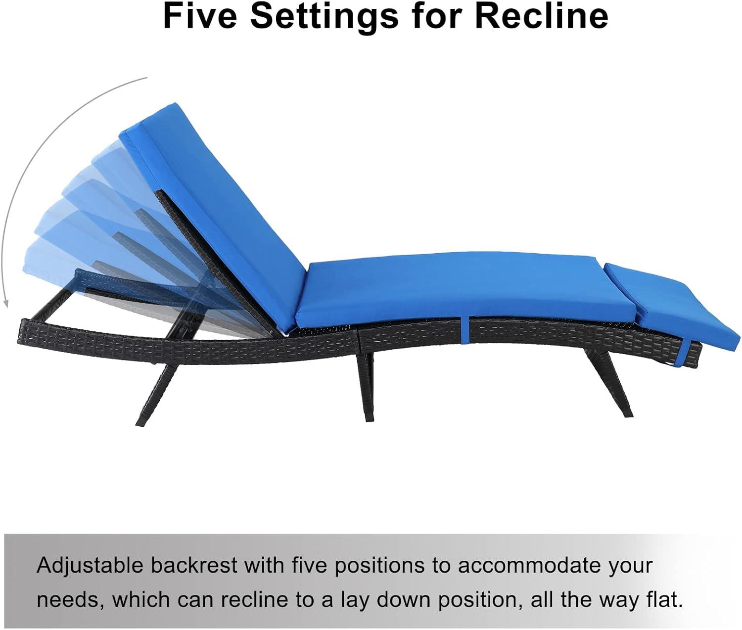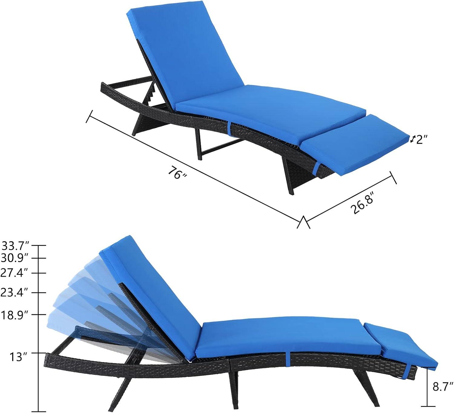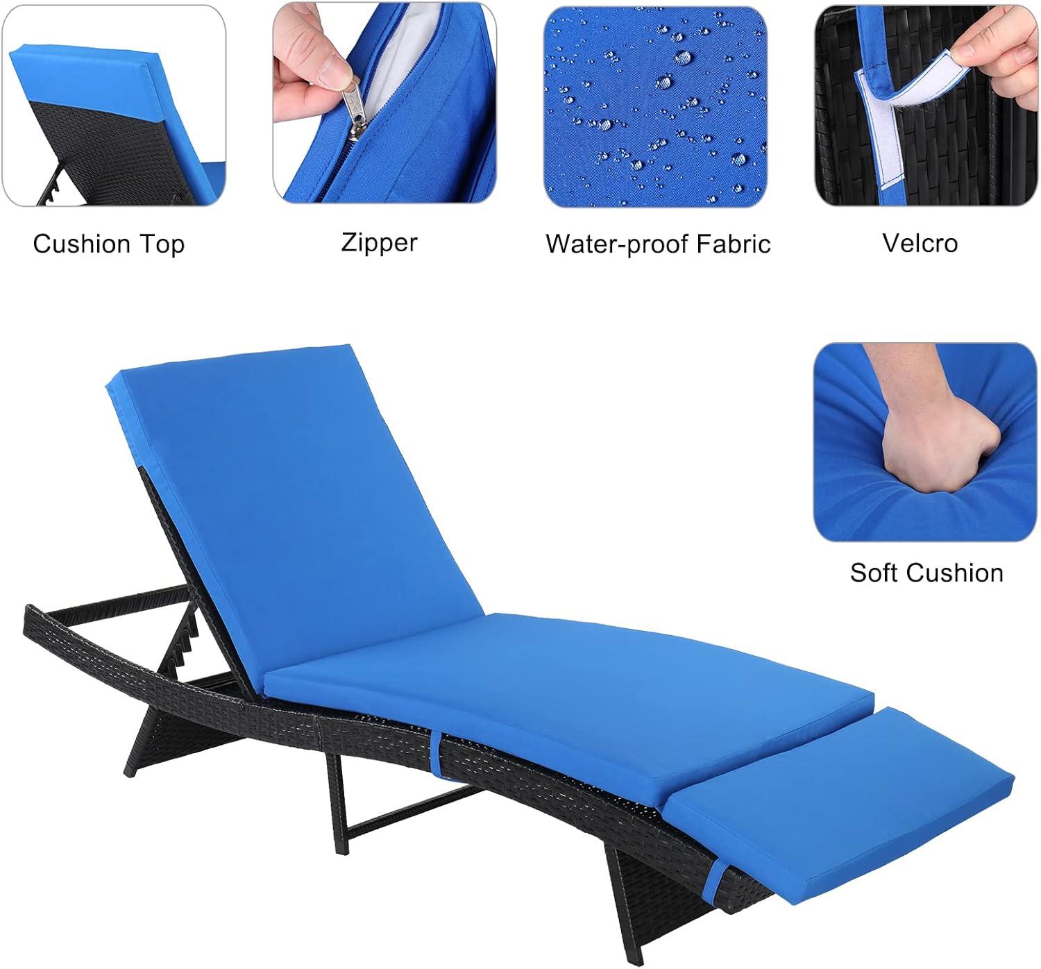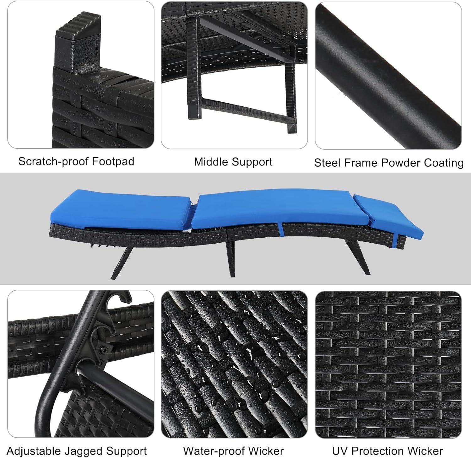【ADJUSTABLE RECLINING】You can easily adjust the backrest from 5 different angles to find the most comfortable angle to relax. Backrest non-slip design makes sure the cushion stable at place. The curved design makes the body lie more comfortably. Without worry, you can enjoy a relax spare time on the wicker chaise lounge