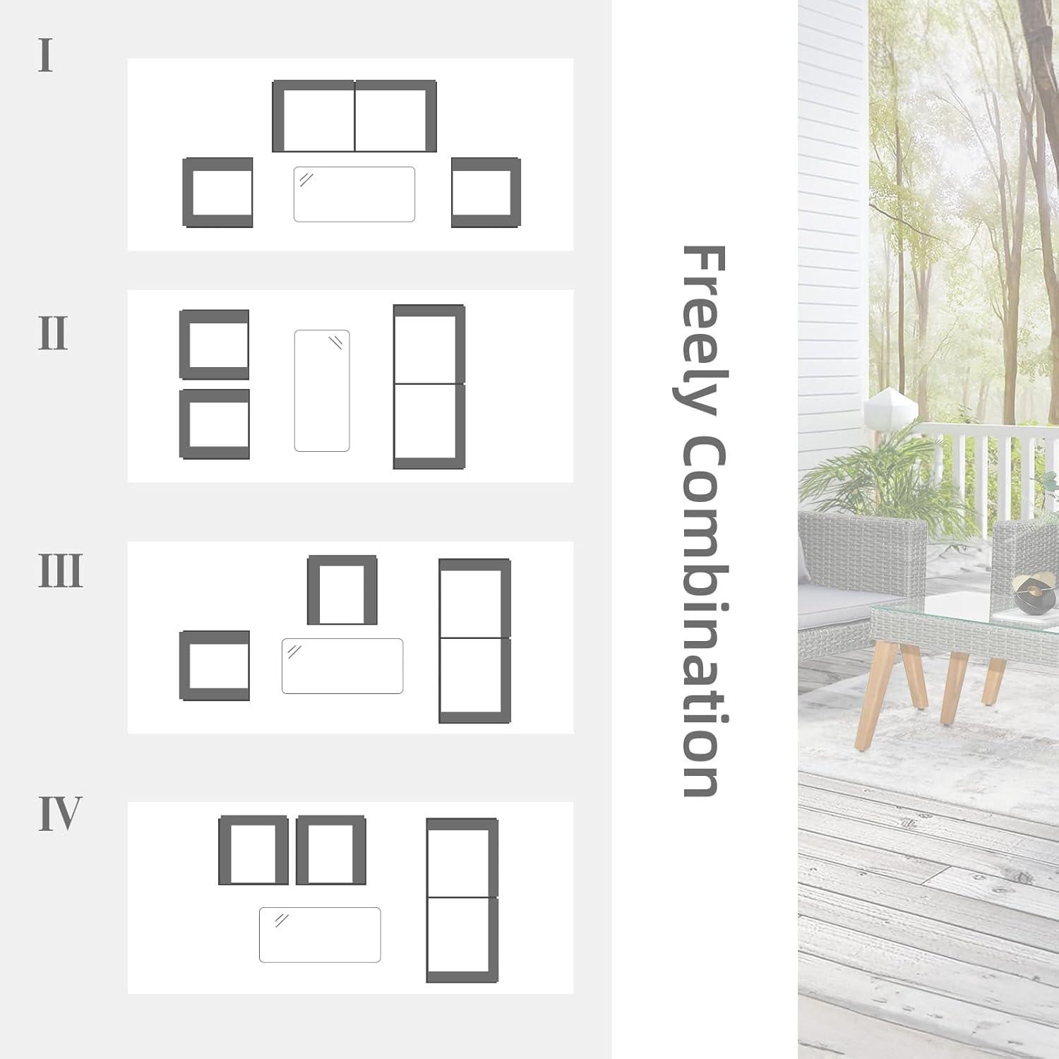 【Sturdy Durability and Exquisite Craftsmanship】: Designed with sturdy metal frame, enhancing load-bearing capacity. The outdoor coffee table can support up to 220 pounds, the loveseat up to 600 pounds, and the patio chairs up to 330 pounds. Utilizing stainless steel screws for installation, ensuring stability without loosening. The surfaces of the table are finely polished, free of burrs, providing a smooth and delicate touch.