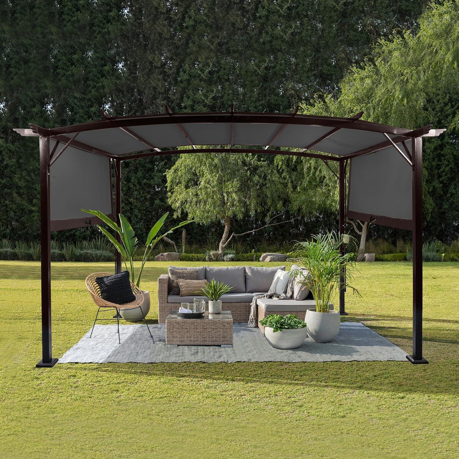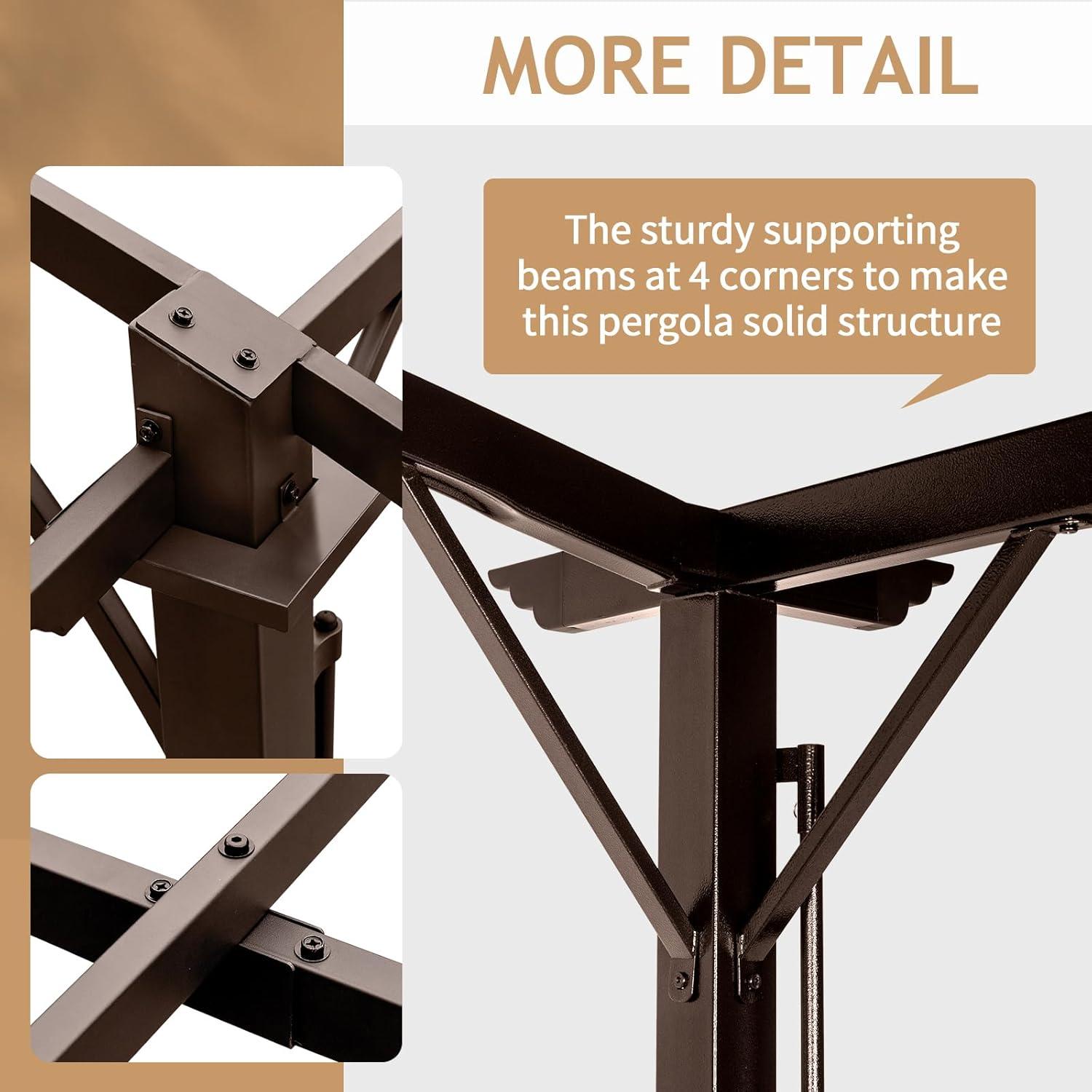 【MAPLE SPACE】9' width x 12' length x 7.6' height provides enough space to make the practical pergola more spacious, and can accommodate more people or items such as larger sofas without crowding. Suitable for family dinner, party time and other events