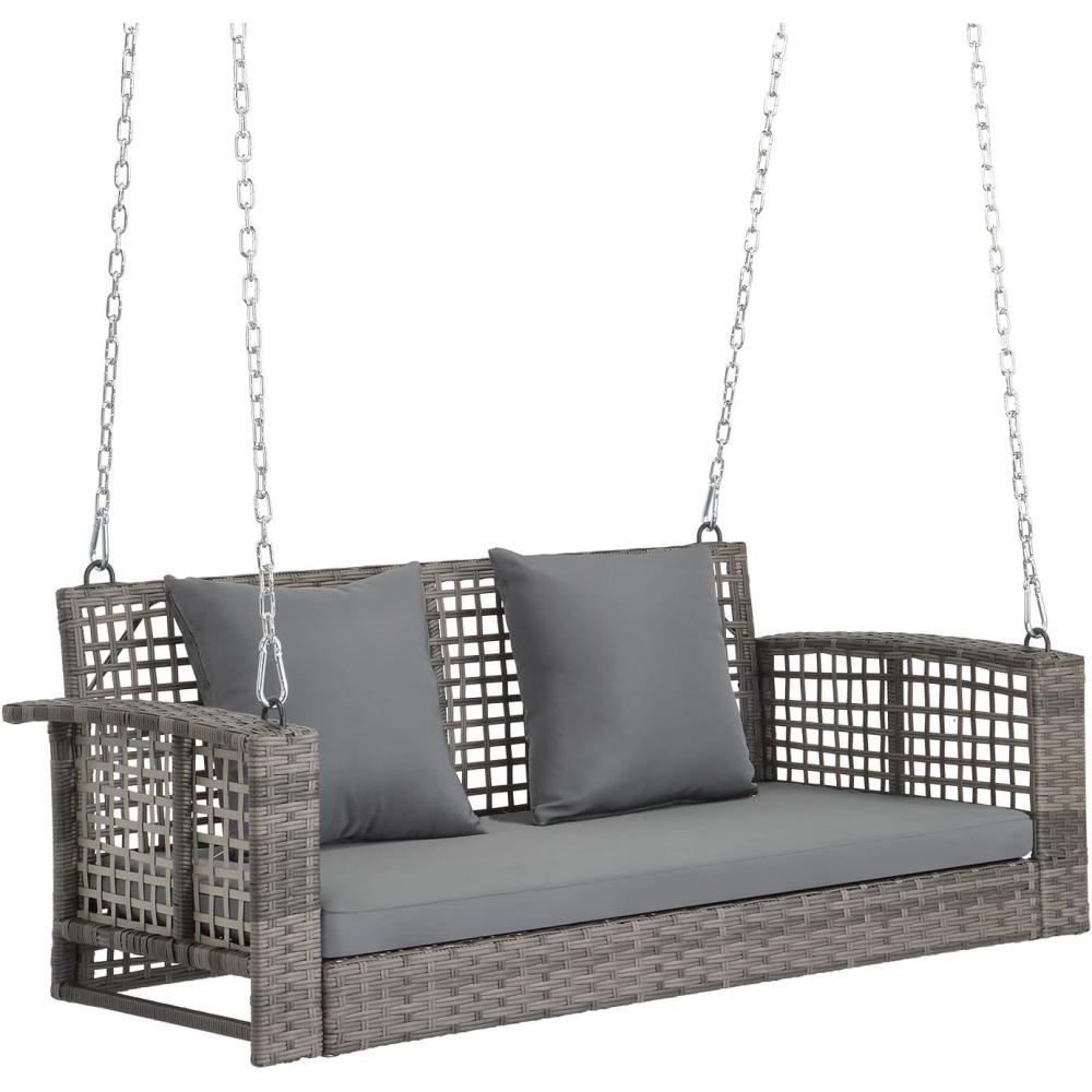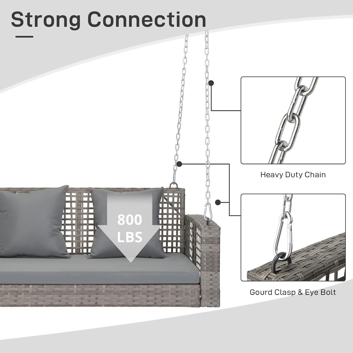 Outvita Porch Swing, 5FT Hanging Outdoor Porch Swings for Adults, Wicker 3 Person Patio Swing, with Cushion, Pillow and Chain for Garden, Backyard, Weight Capacity - 1000lbs(Grey & Grey)