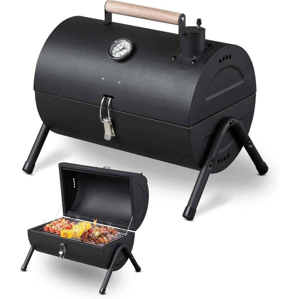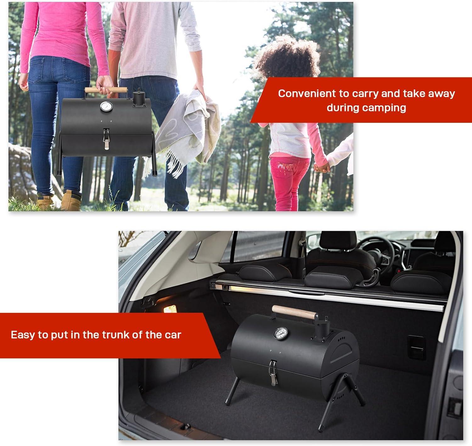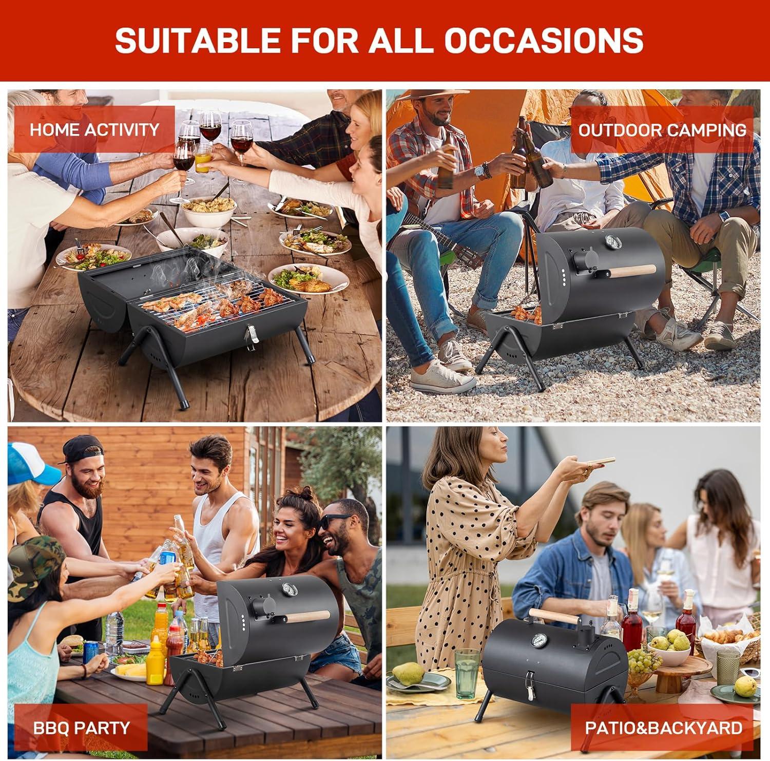 【Sturdy Stainless Steel】The durable charcoal grill is made of rust-resistant stainless steel. Designed with anti-slip foot and A-frame construction with extra support bar to ensure the stability and safety of the portable bbq charcoal grill during the grilling.