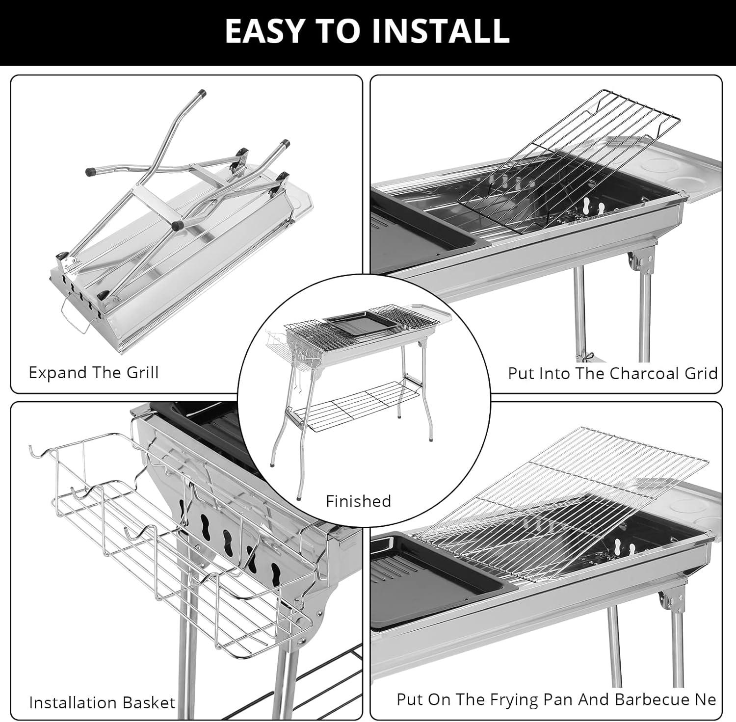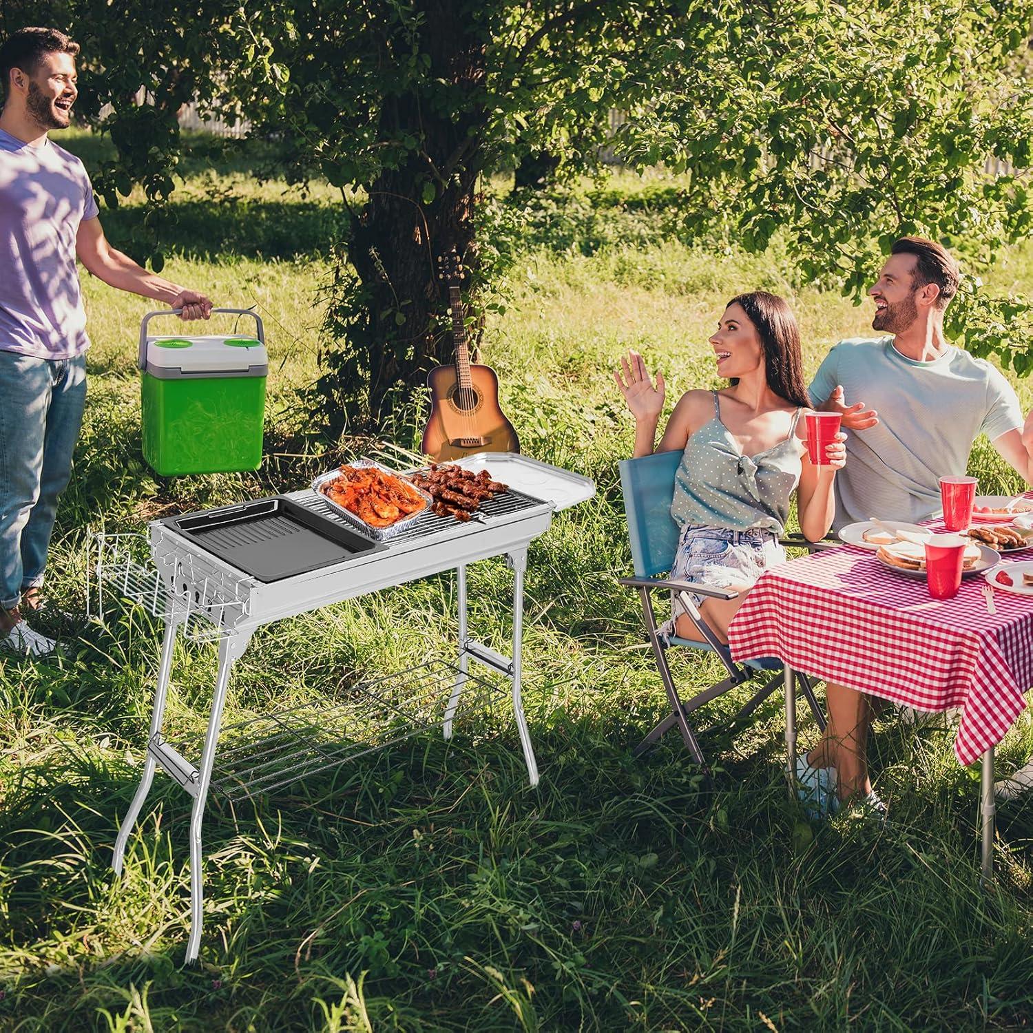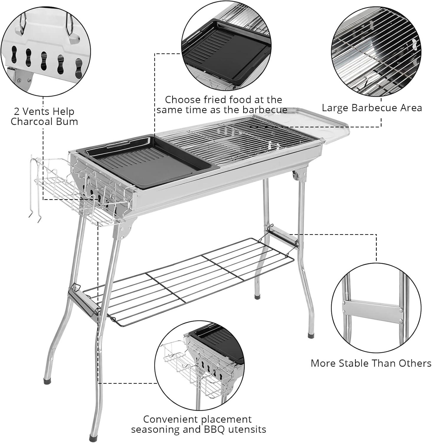 Outvita Portable Charcoal Grill, 39 x 12x 28" Foldable Barbecue Grill, Stainless Steel BBQ Grill for Outdoor Cooking Camping Hiking Picnic Garden Beach Party(Large)(39.37" x 12.2" x 27.95")