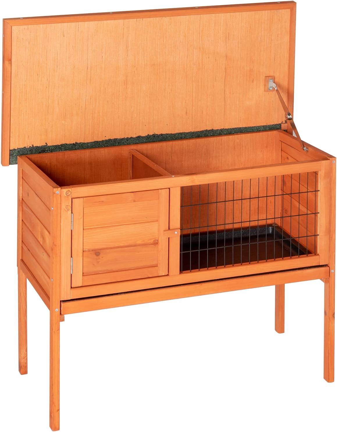 【Convenient Daily】Our rabbit hutchs are thoughtfully designed to make your daily chores easier. The roof of the coop has an adjustable arm for easy cleaning and feeding of your poultry, and there is a tray at the bottom so you don't have to open the coop, just pull out the tray for easy cleaning of the coop.