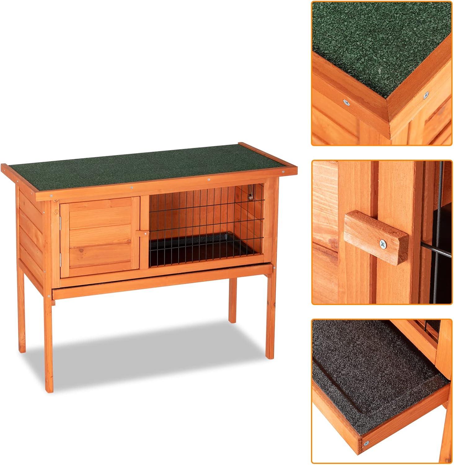 Outvita Rabbit Hutch, 36″ Single Deck Waterproof Wooden Chicken Coop Wire Hen Quail House Indoor Outdoor Use,Bunny Cage Small Pet Animal Poultry Cage (Wood)(Wood)