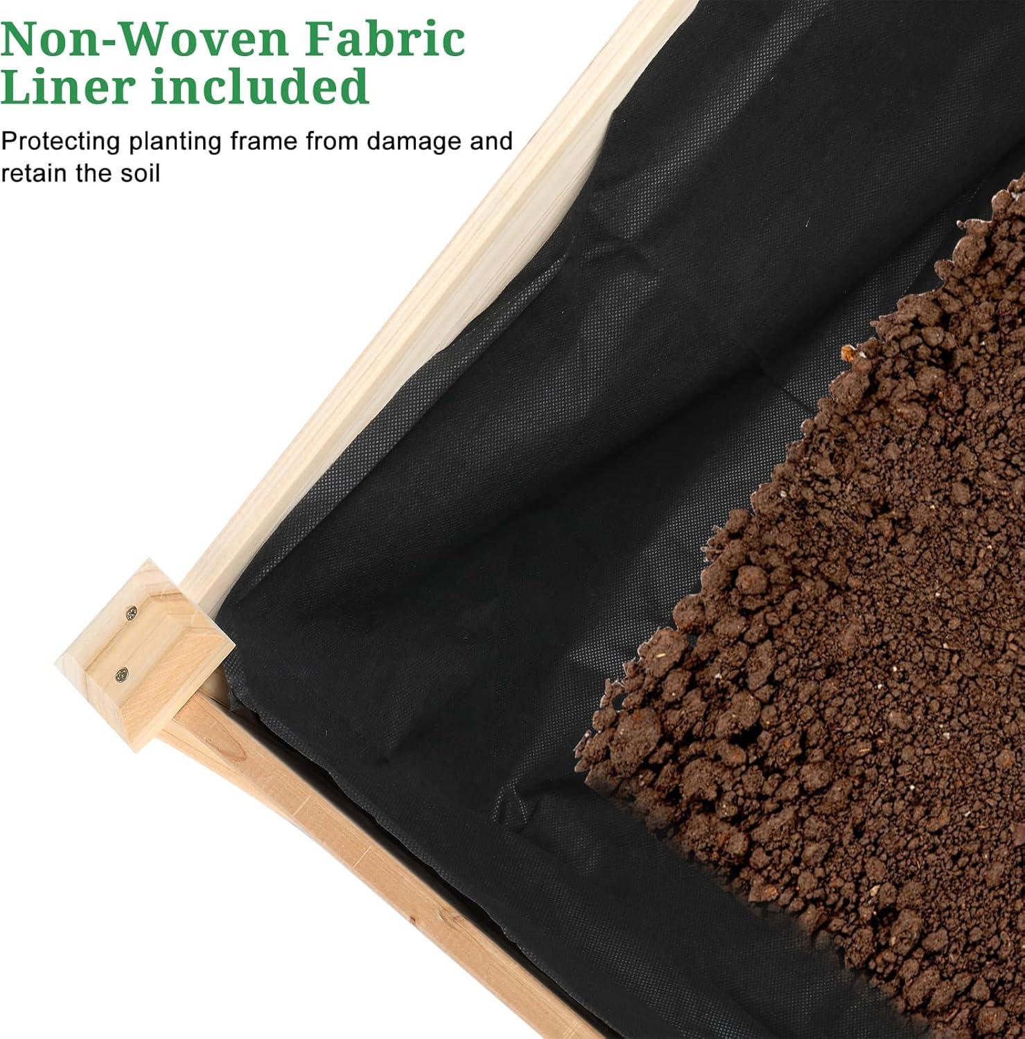 【STABLE & DURABLE】This raised bed planter is made of high quality fir wood which is not easy to crack. The accompanied non-woven fabric cloth can be placed on the bottom to provent damage and retain the soil. Our planter is made from FSC-Certified wood