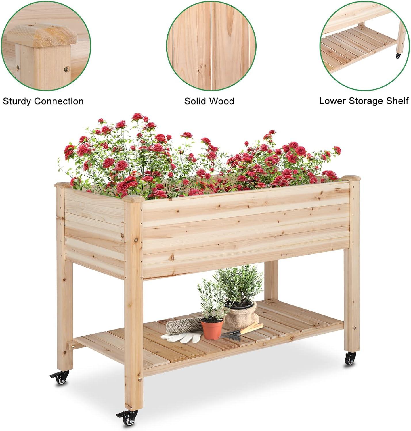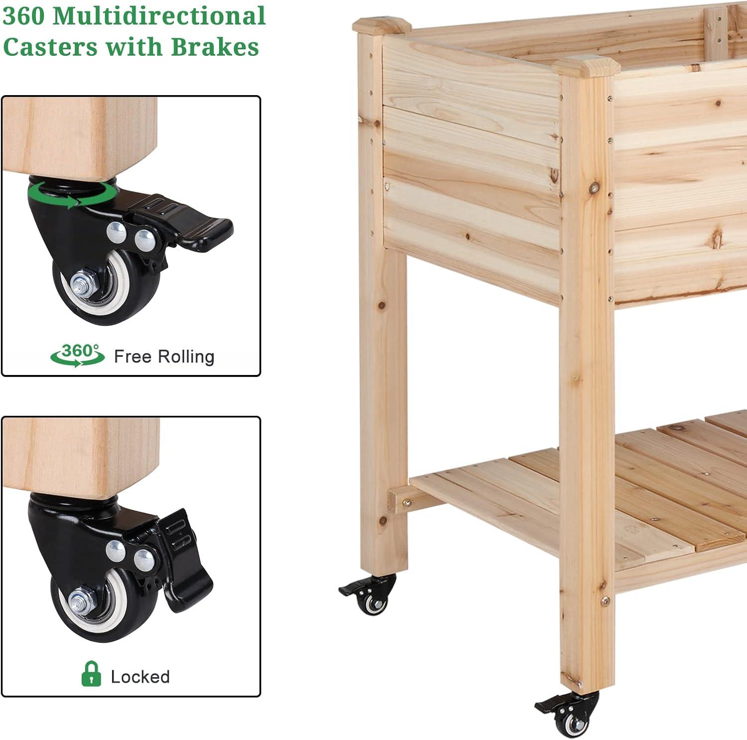 【EASY MOVEMENT】To move and stop easily, this elevated garden bed is paired with four 360° multidirectional caster wheels. The wheels are lockable to keep in place. Perfect to place in balcony, garden, backyard