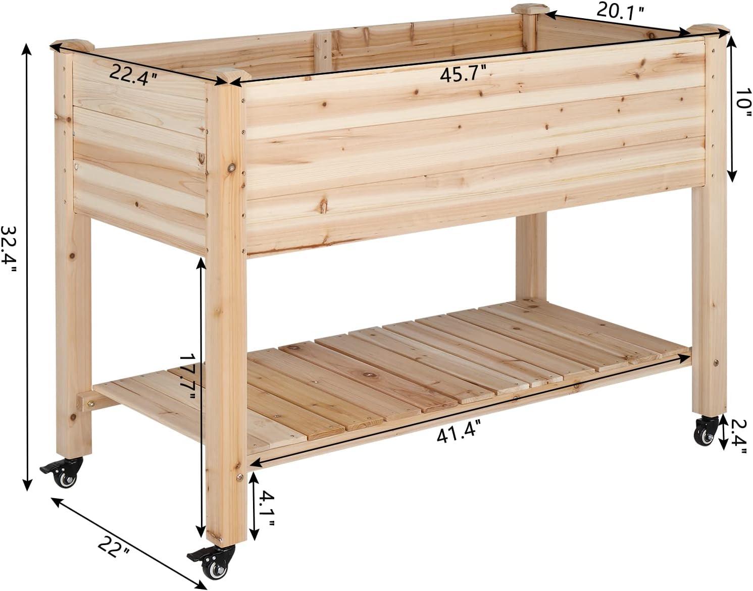 【OVERALL】32.4″(H)x22″(W)x45.7″(L).Weight Capacity: 100 lbs. 10″deep raised bed is enough to plant flowers, vegetables or fruits. 32.4″ height is helpful for those who struggle to bend down or lean over while gardening