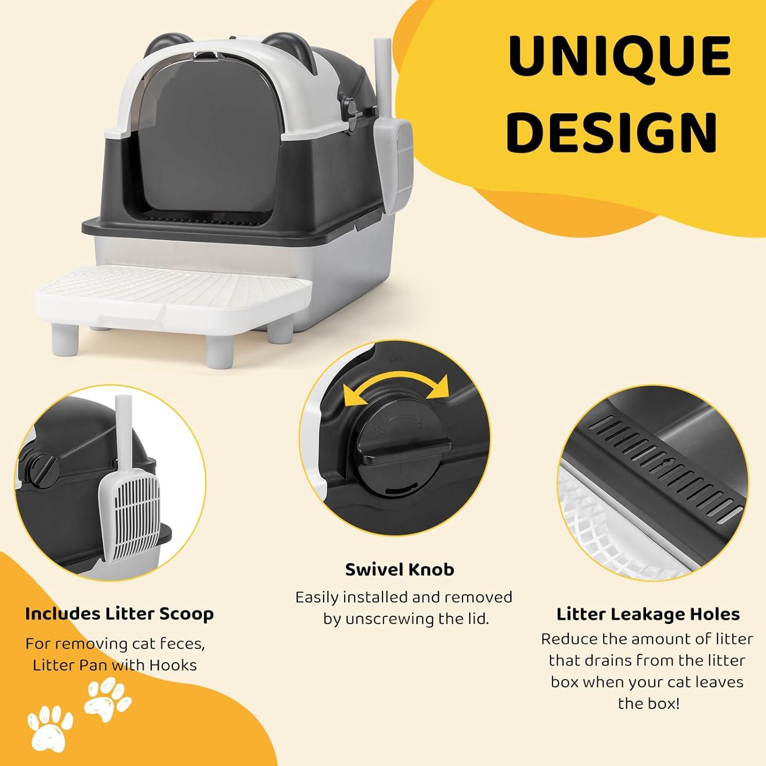 1. Extra Large Capacity: Measuring 23.6 x 15.7 x 18.1 inches, this litter box offers generous space for large cats or multi-cat homes, allowing cats to move comfortably and freely.