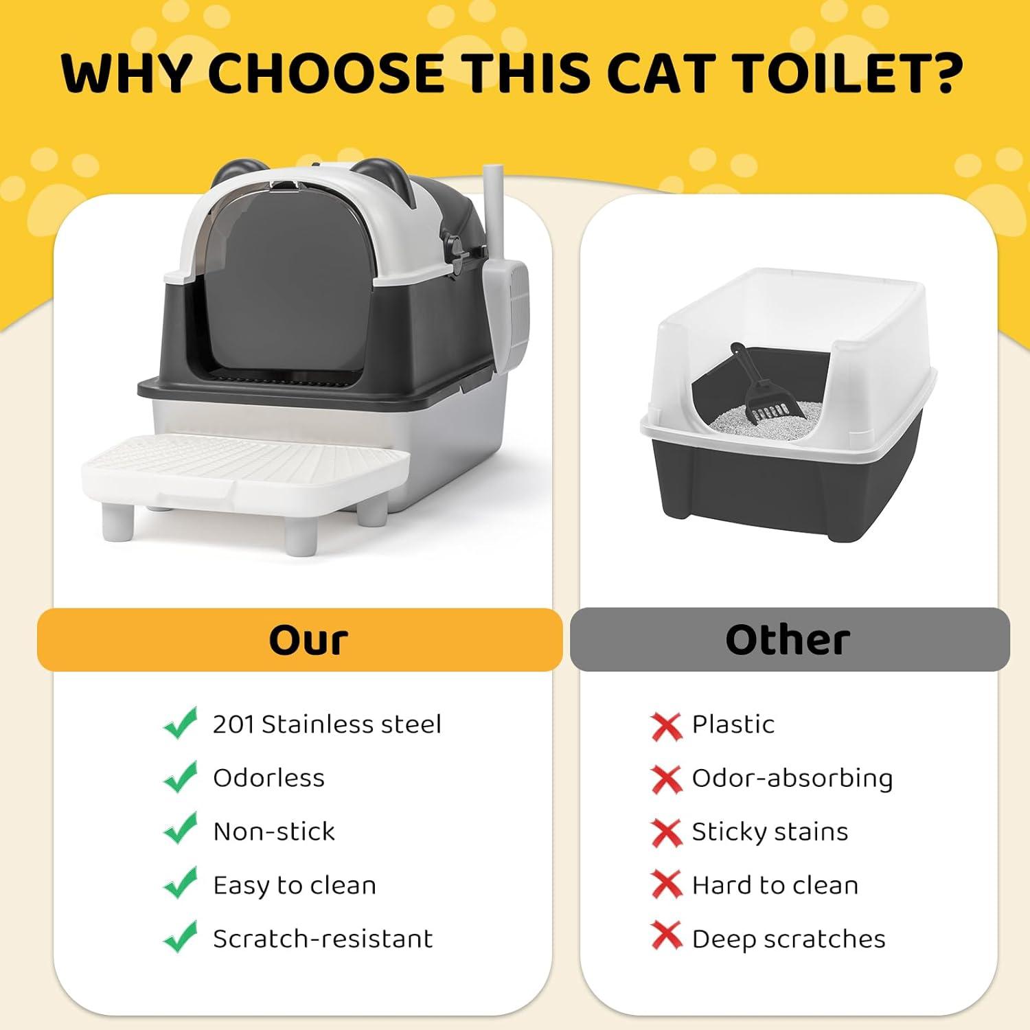 2. Durable Stainless Steel Design: Made from high-quality stainless steel that resists corrosion, staining, and odors—built to last way much longer than plastic litter boxes.
