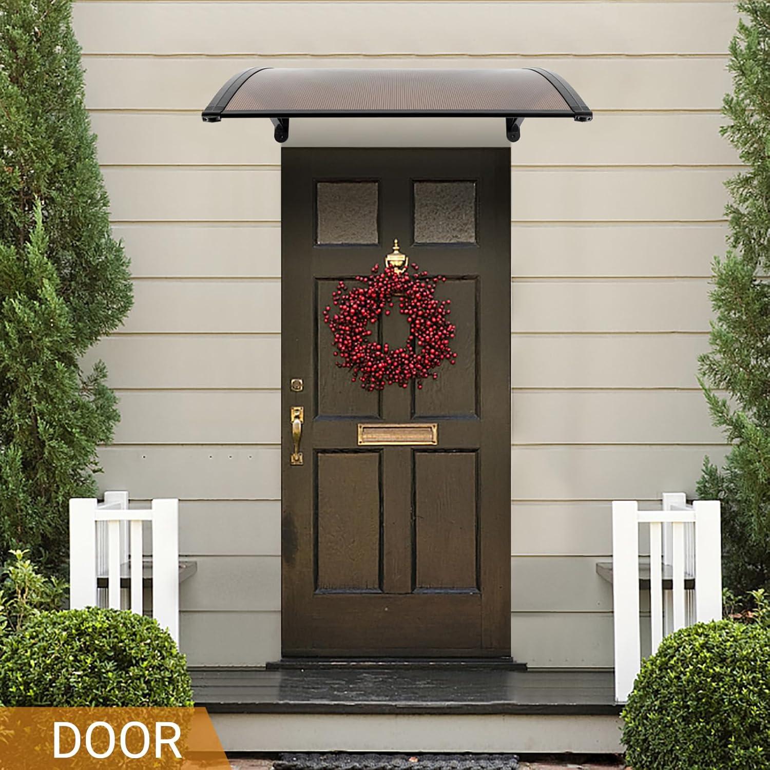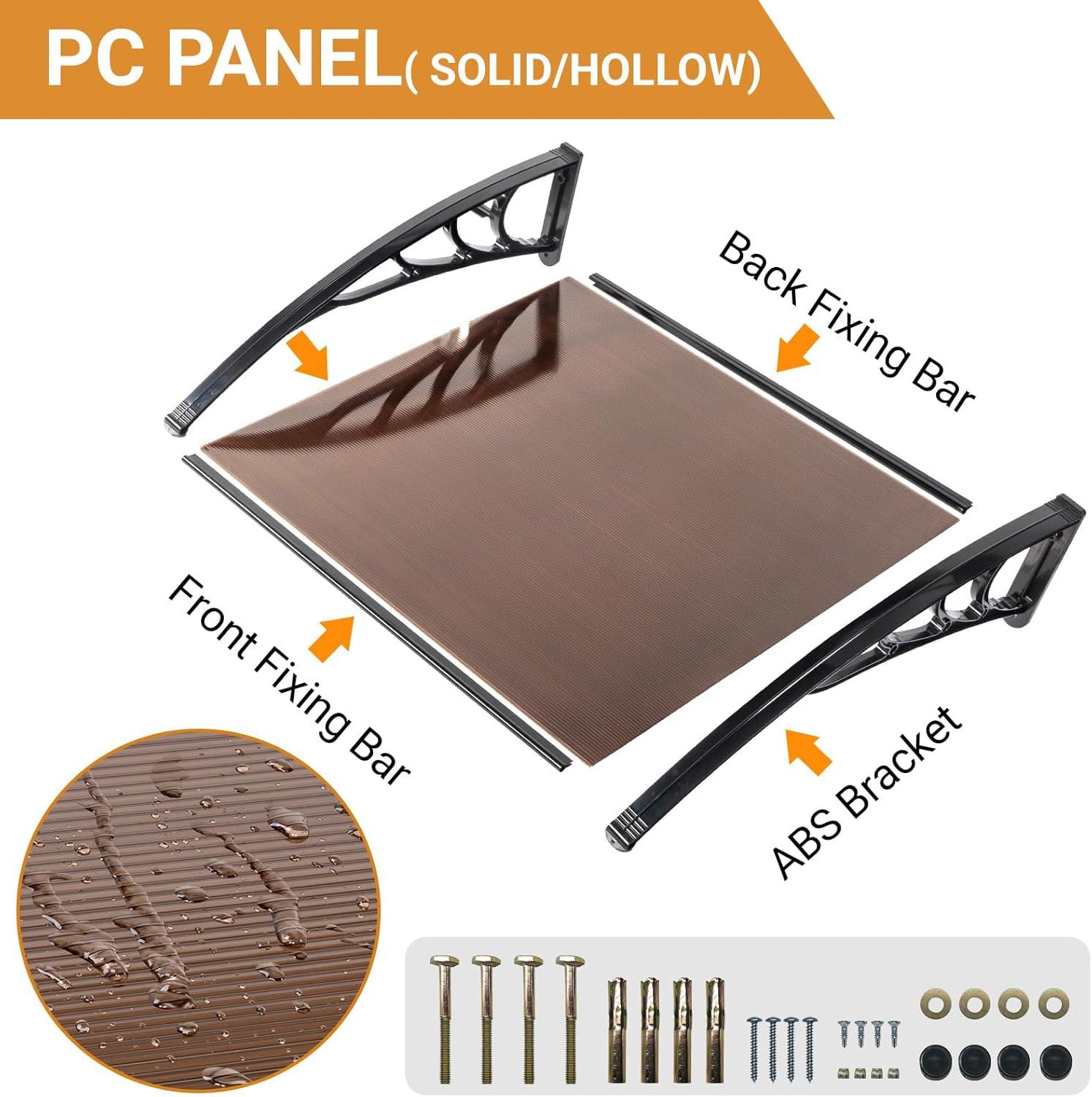 Outvita Window Awning Door Canopy 40″x 80″, Whole Piece Polycarbonate Cover Front Door Outdoor Patio Awning Canopy UV Rain Snow Sunlight Protection Hollow Sheet (Brown Board & Black Bracket)(40″x80″)