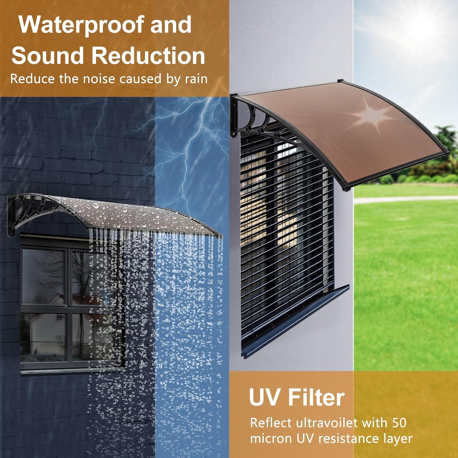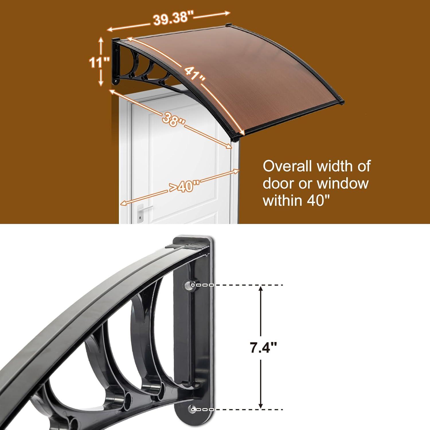 Outvita Window Awning Door Canopy 40"x 80", Whole Piece Polycarbonate Cover Front Door Outdoor Patio Awning Canopy UV Rain Snow Sunlight Protection Hollow Sheet (Brown Board & Black Bracket)(40"x40")
