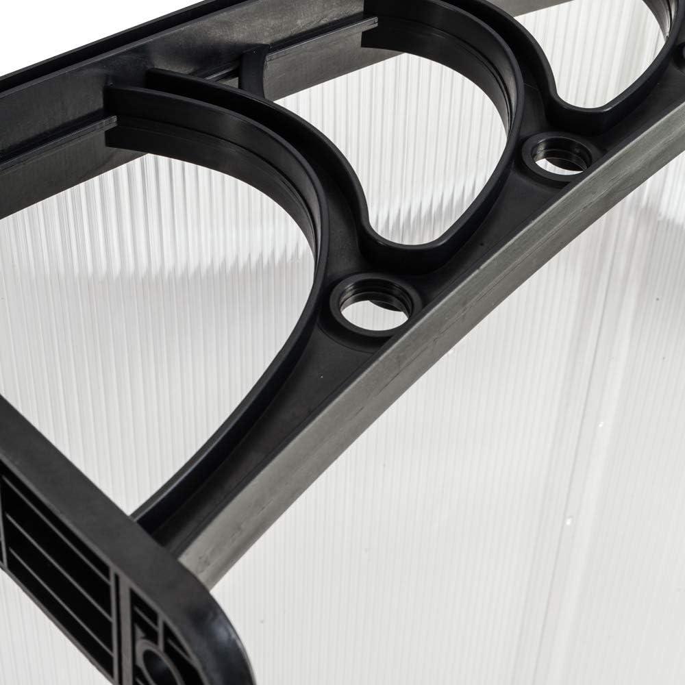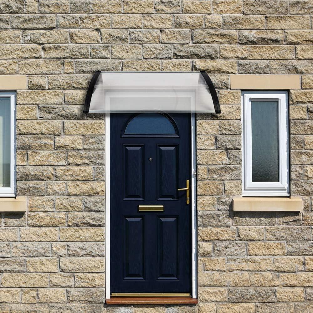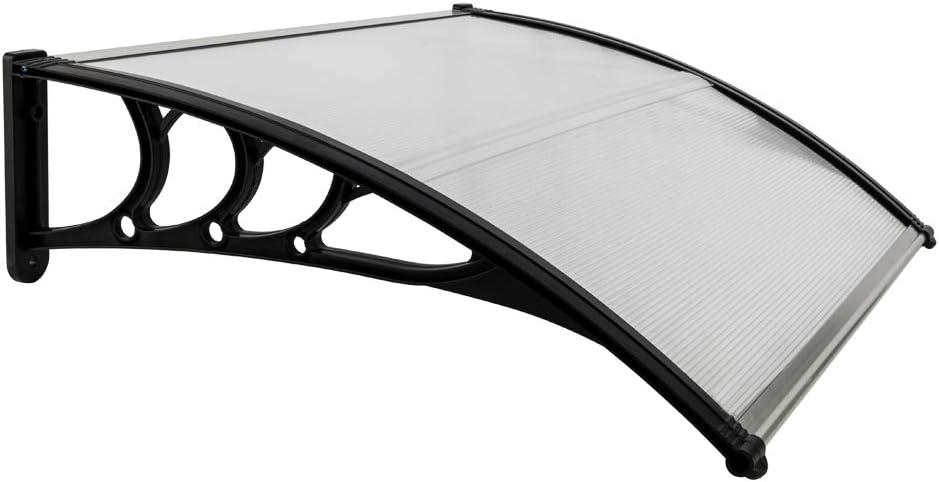 【DURABLE MATERIALS】 – Patio door window awning canopy is made of a 5mm clear hollow polycarbonate panel, plastic firm bracket and aluminum bar, this awning resists rusting and corrosion from the elements. Seamless surface, no water leaking, looks sleek, lightweight sturdy.