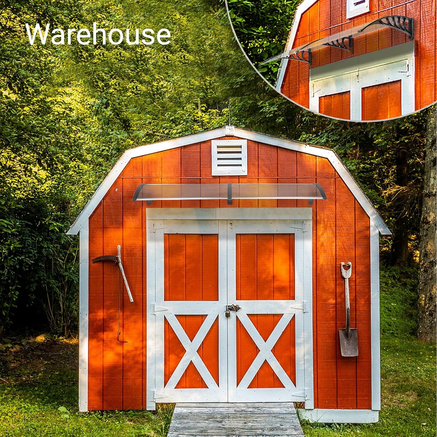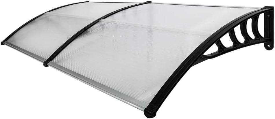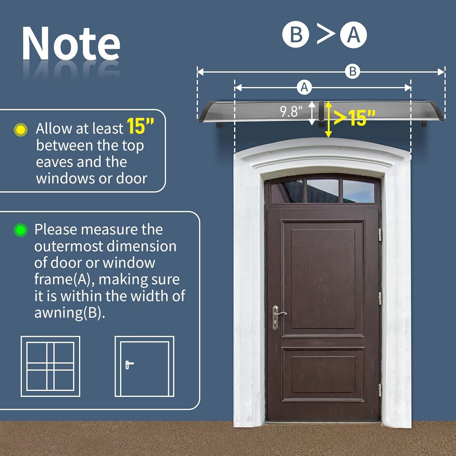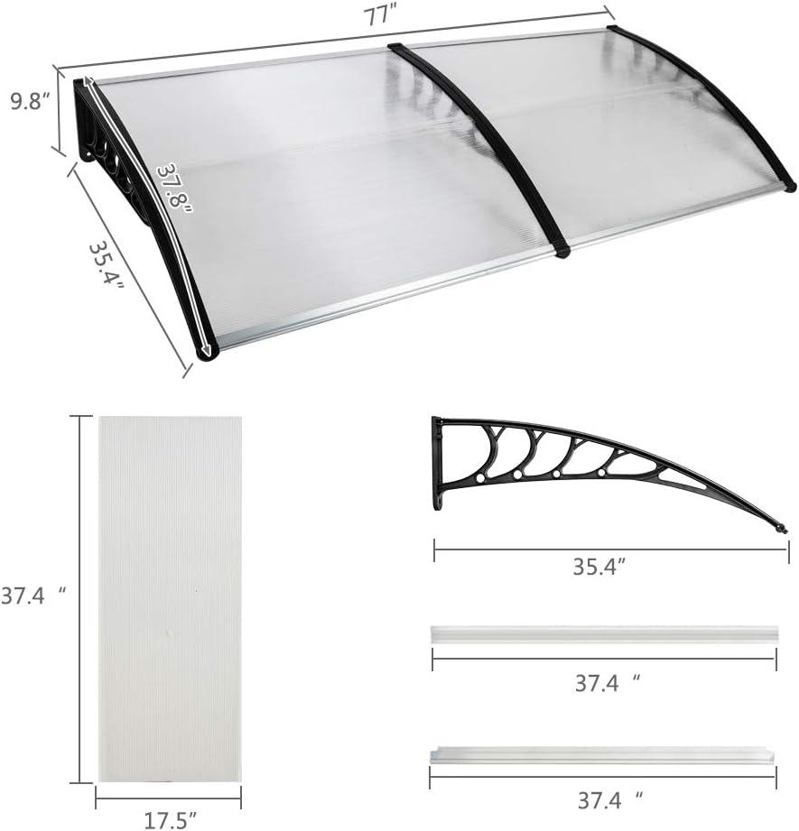 【DURABLE MATERIALS】 – Patio door window awning canopy is made of a 5mm clear hollow polycarbonate panel, plastic firm bracket and aluminum bar, this awning resists rusting and corrosion from the elements. Seamless surface, no water leaking, looks sleek, lightweight sturdy.