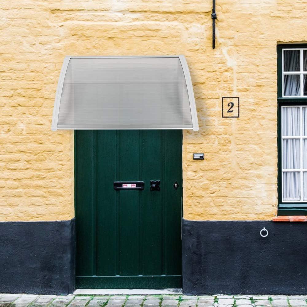 【DURABLE MATERIALS】 – Patio door window awning canopy is made of a 5mm clear hollow polycarbonate panel, plastic firm bracket and aluminum bar, this awning resists rusting and corrosion from the elements. Seamless surface, no water leaking, looks sleek, lightweight sturdy.