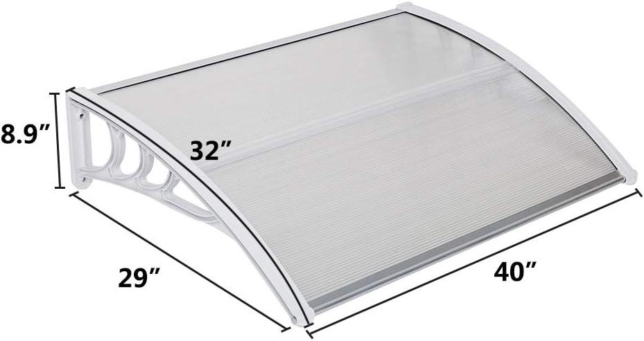 Outvita Window Awning Door Canopy 40"x30", Polycarbonate Cover Front Door Outdoor Patio Awning Canopy UV Rain Snow Sunlight Protection Hollow Sheet, Clear Board & White Bracket(Clear Board & White Bracket)