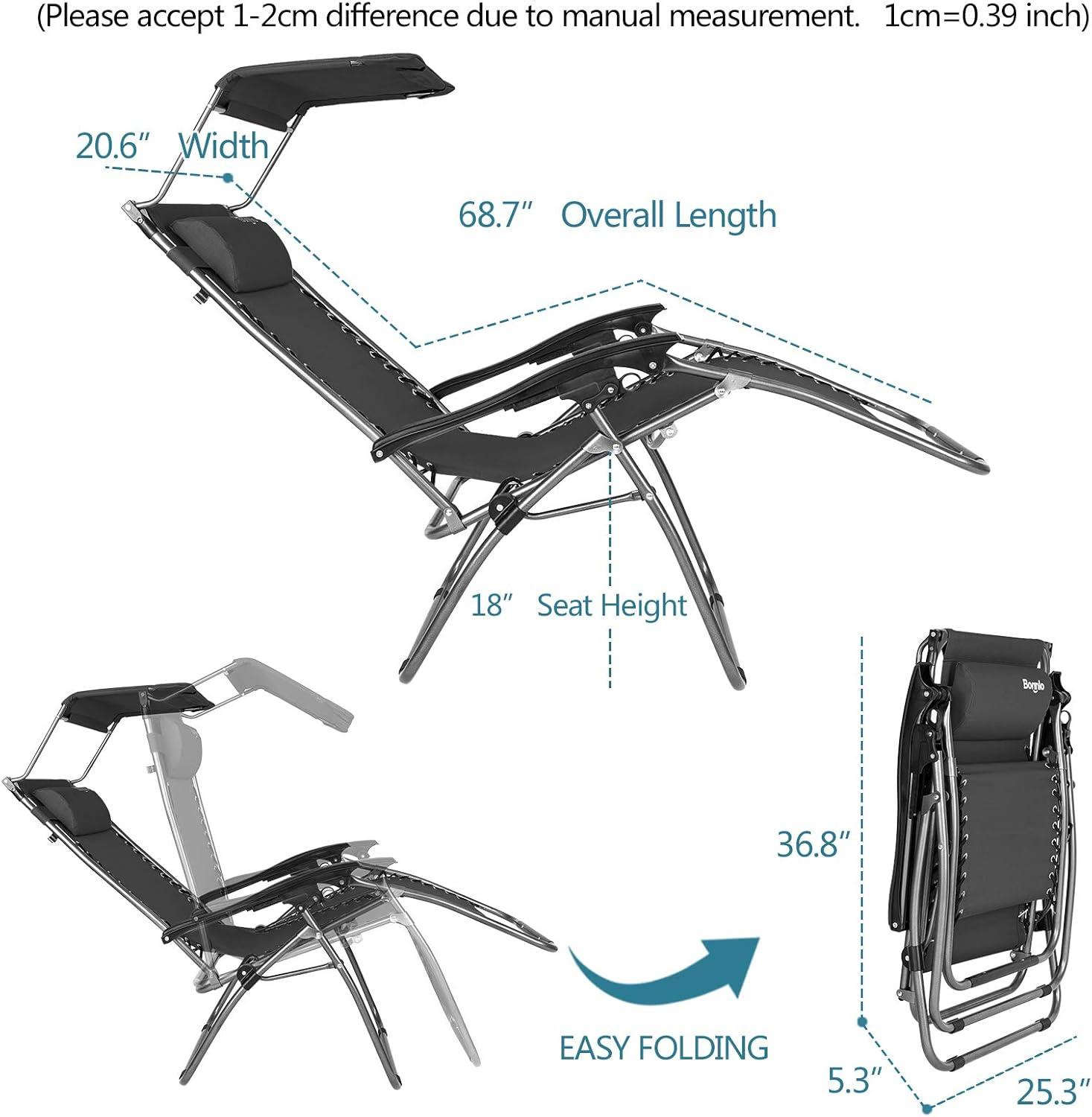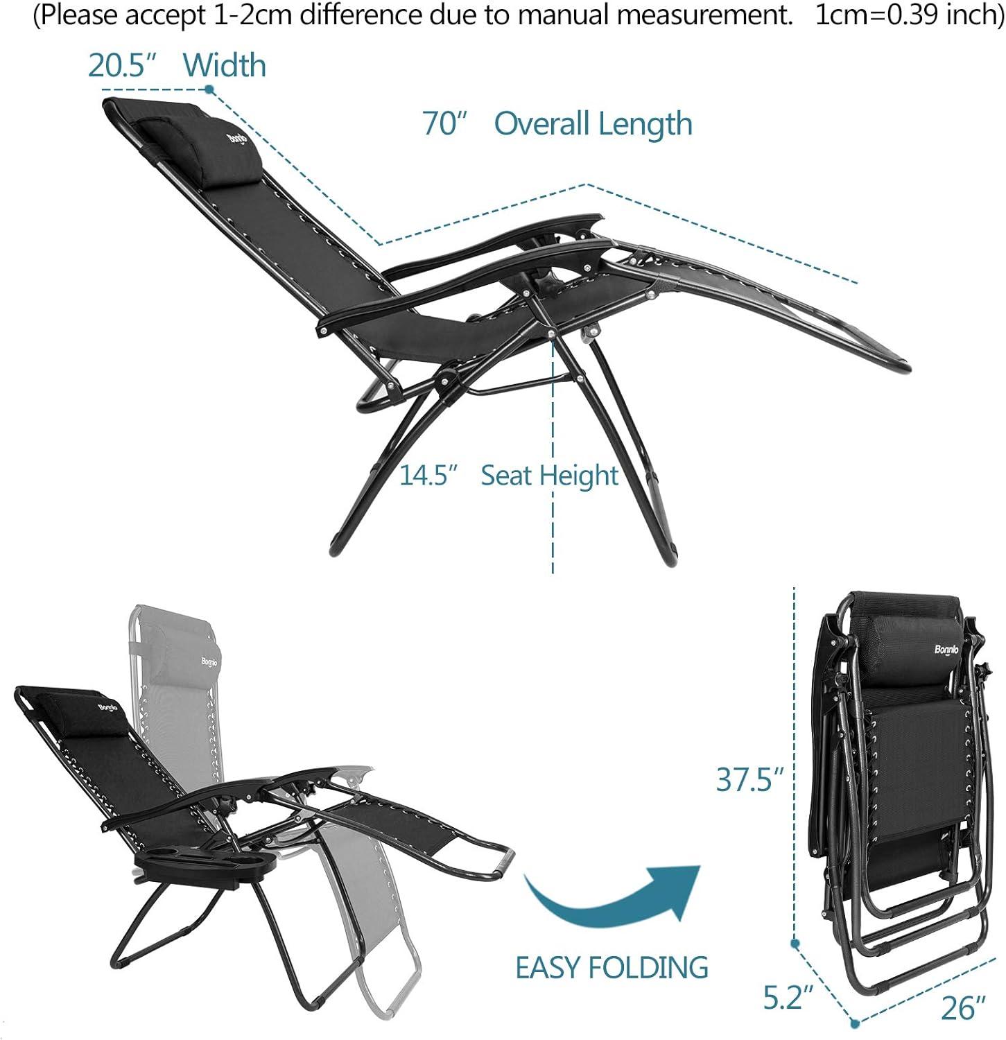 【NO ASSEMBLE & PORTABLE】No assemble needed. One second to open or fold this zero-gravity chair. After folding, the size is 25.3”x 5.3”x 36.8”(L x W x H). Perfect for garden, lawn, beach, poolside, deck, balcony, picnic, sporting