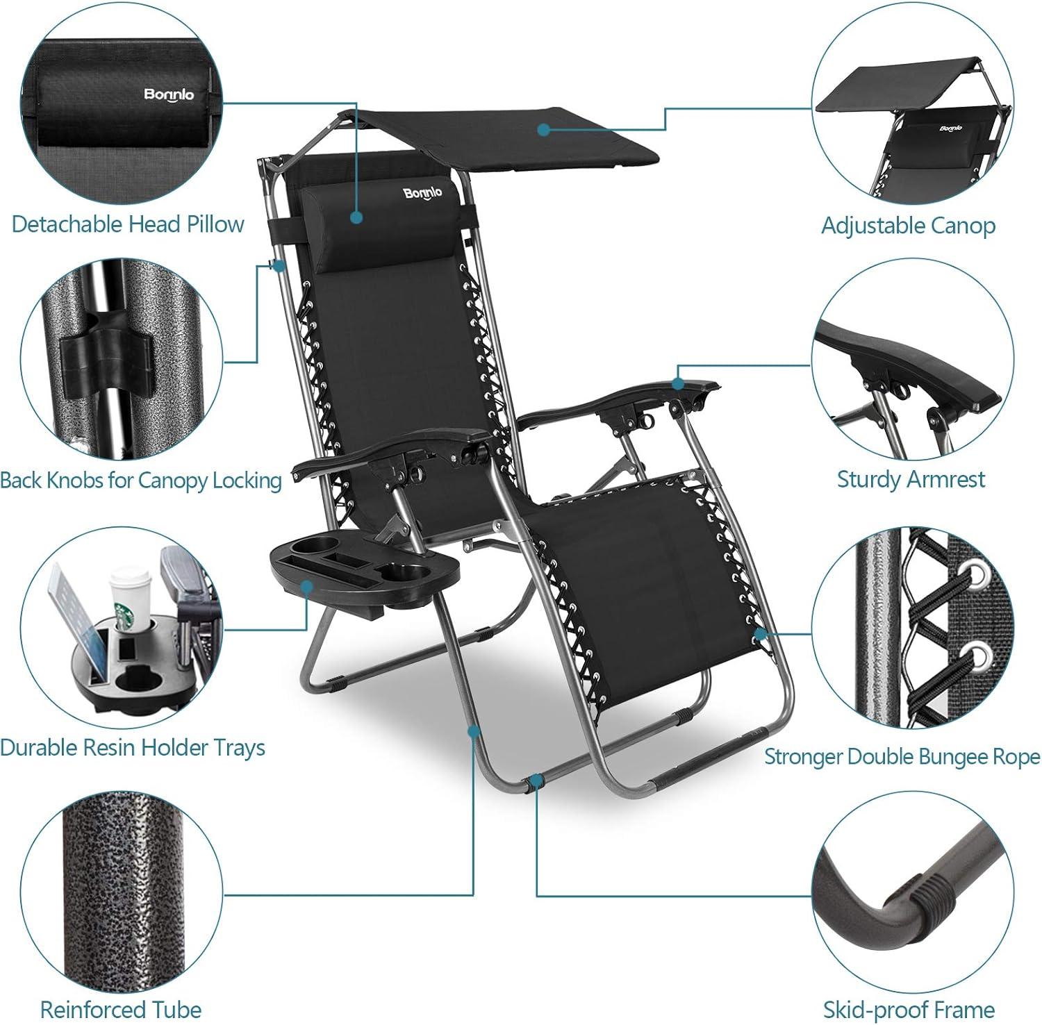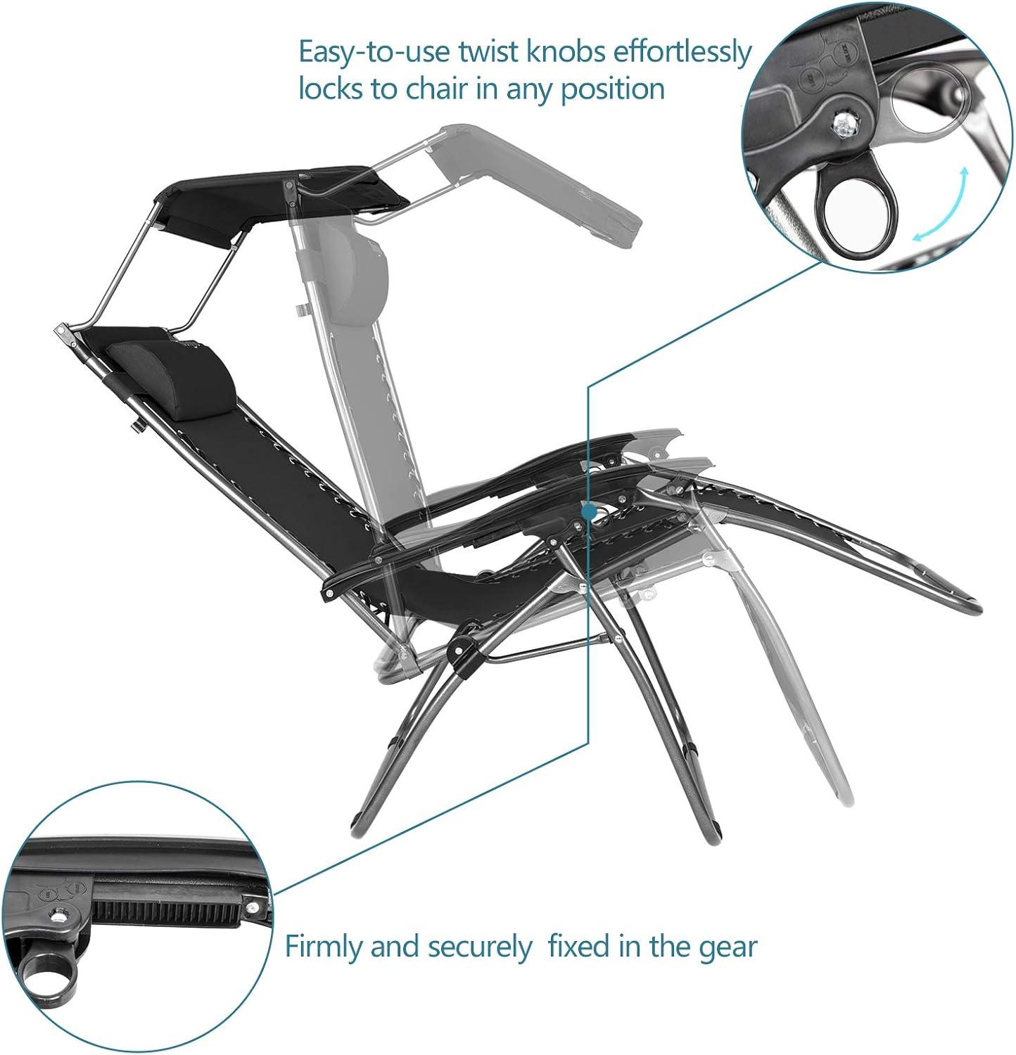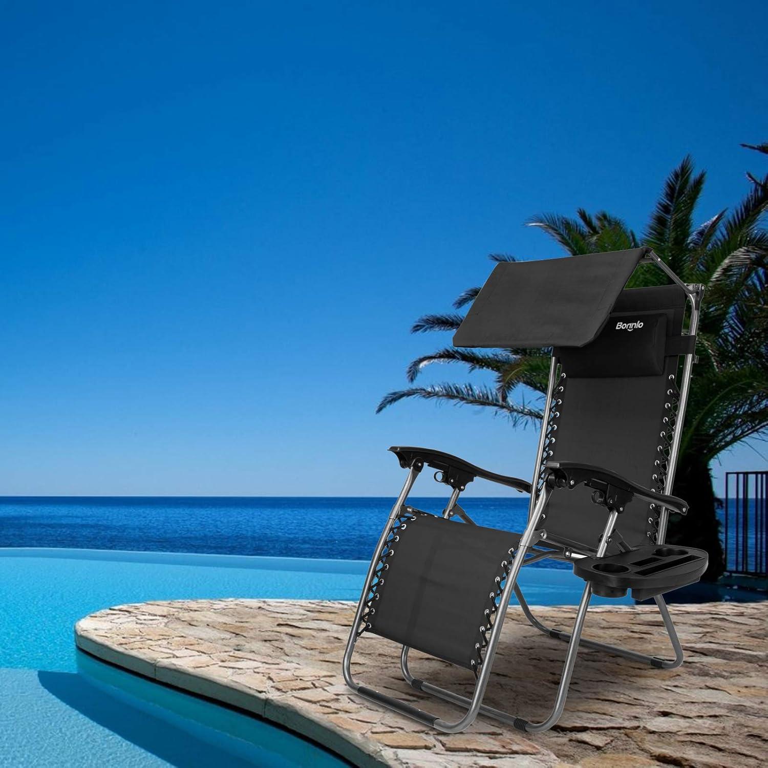 Outvita Zero Gravity Chair, Outdoor Lounge Chair, Stable Metal Folding Recliner w/Cup Holder & Adjustable Canopy Shade for Deck Lawn Patio Poolside Yard, Black(Black)