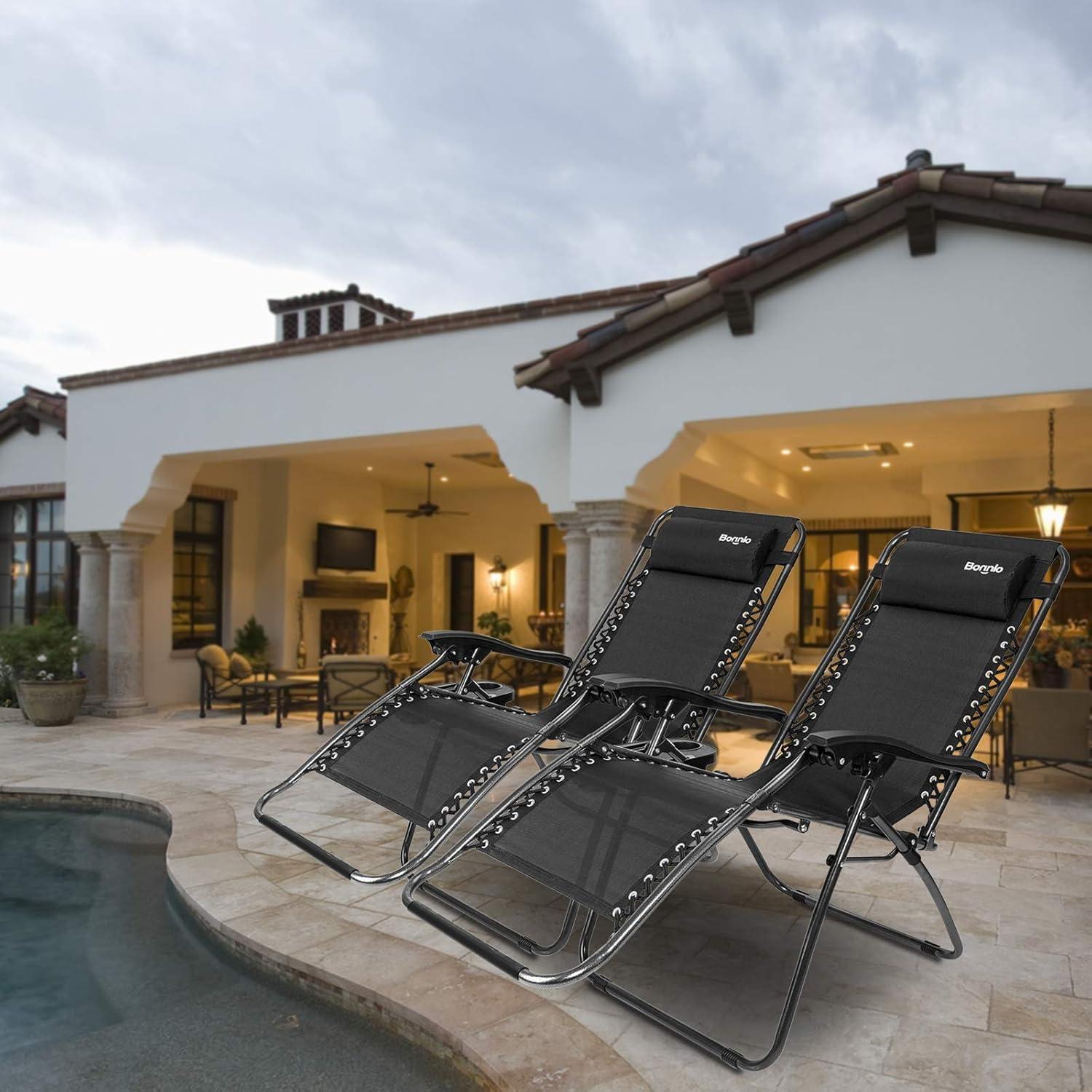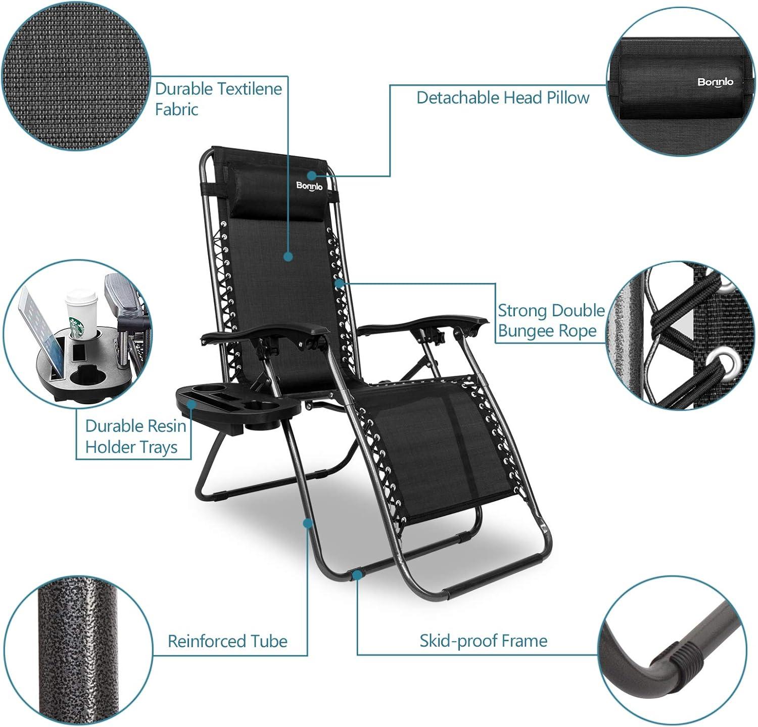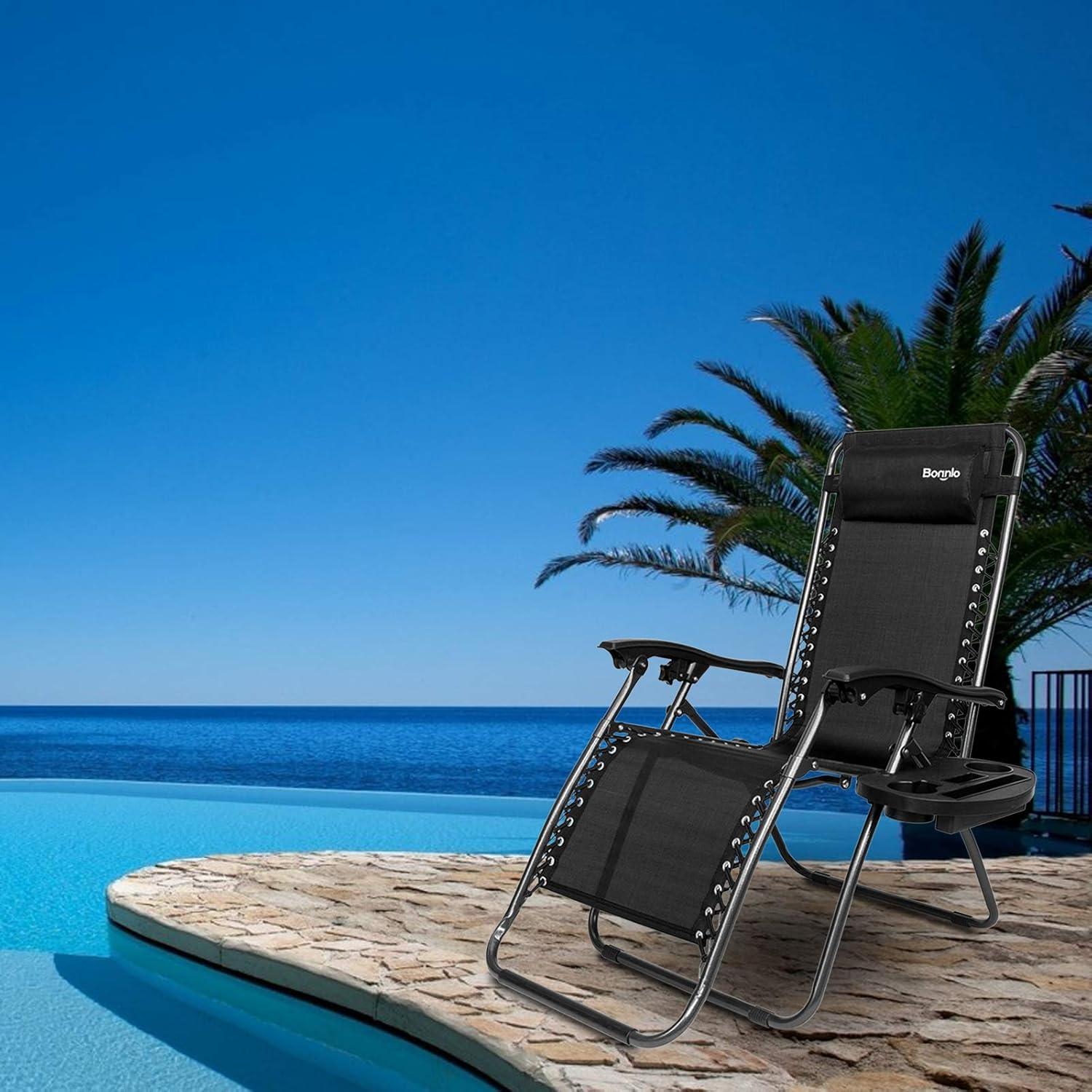 Outvita Zero Gravity Chair, Outdoor Lounge Chair, Stable Metal Folding Recliner w/Cup Holder & Adjustable Canopy Shade for Deck Lawn Patio Poolside Yard, Black(Black)